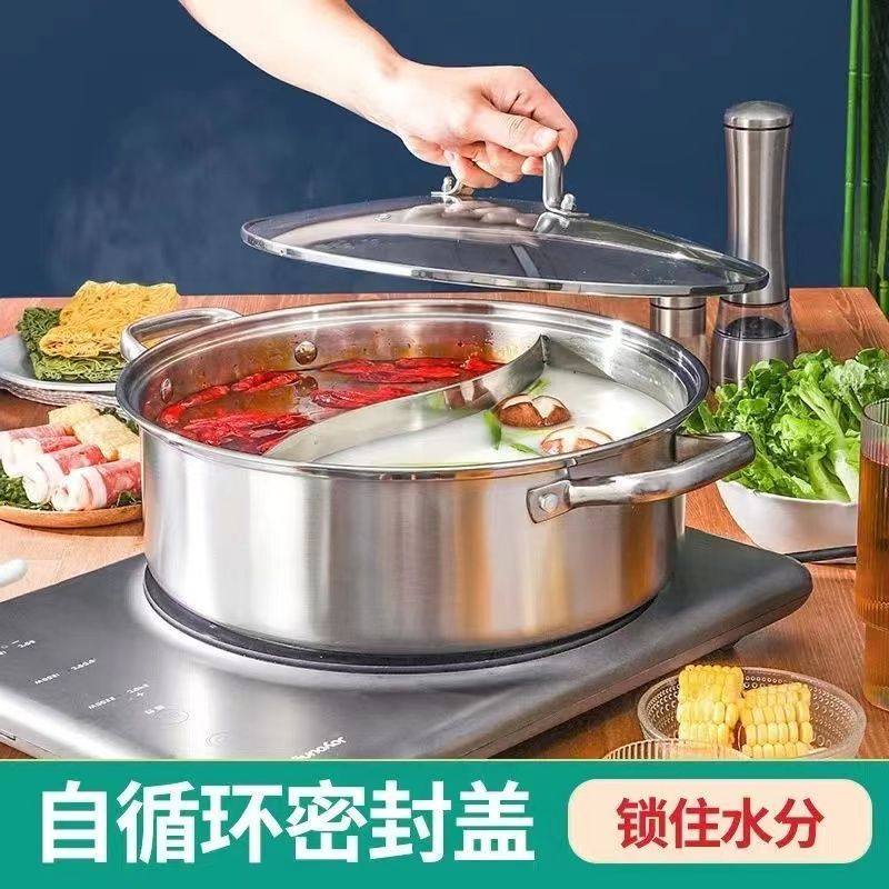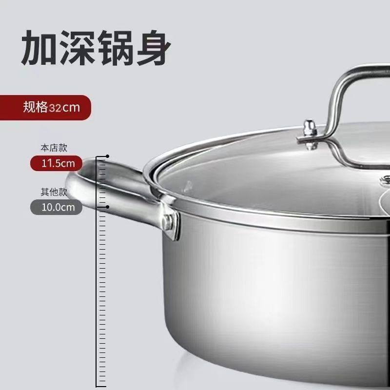 加厚食品级不锈钢锅大容量火锅锅具家用电磁炉专用吃火锅的火锅盆
