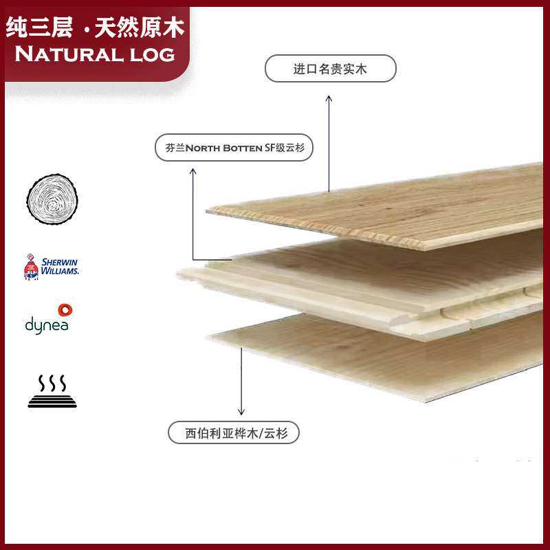 欧橡纯三层实木复合地板原木奶白色别墅大宅2.2米AB无结疤锁扣
