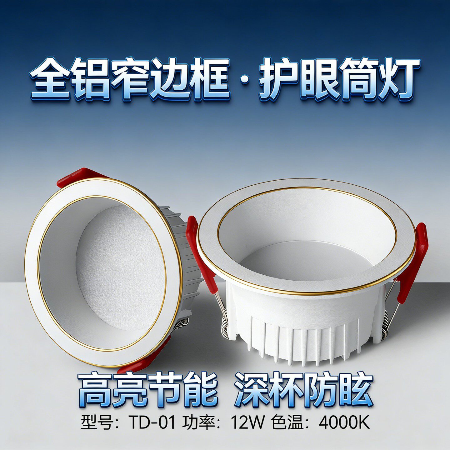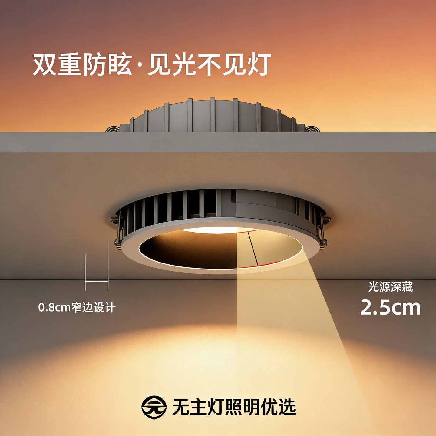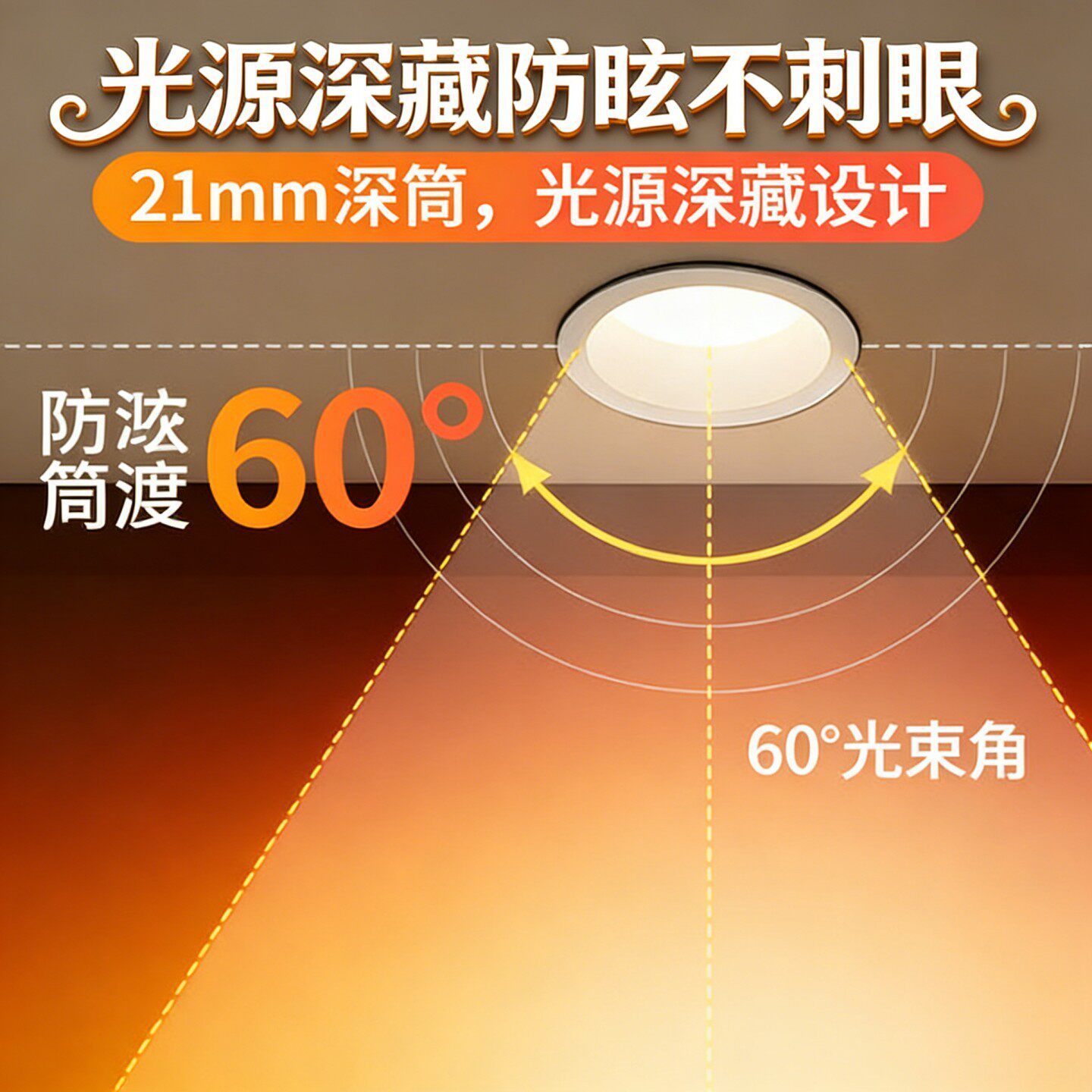 深杯防眩led筒灯嵌入式75mm开孔全光谱三色变光家用过道天花孔灯