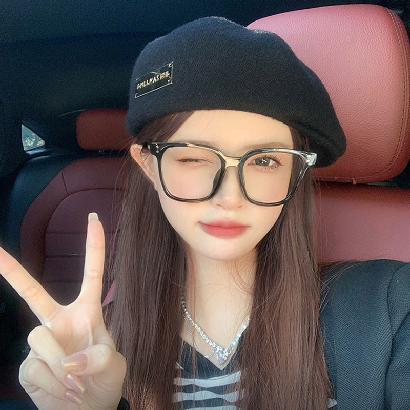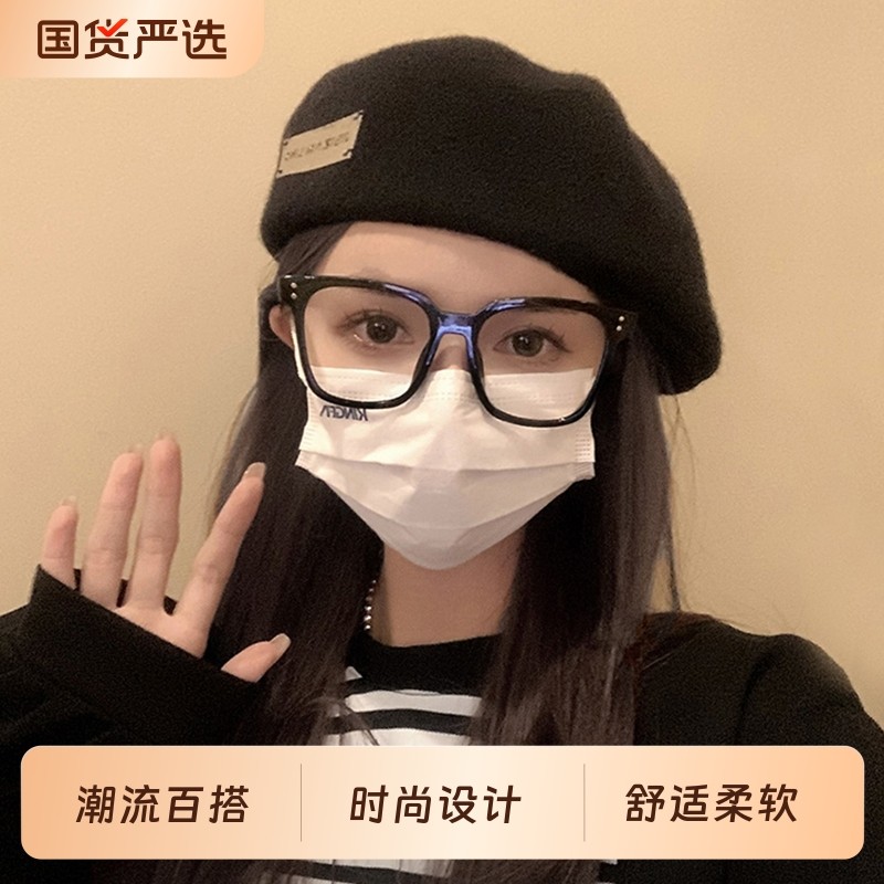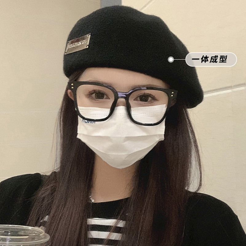 大头围黑色贝雷帽女春秋新款显脸小反戴前进帽秋冬羊毛呢画家帽子