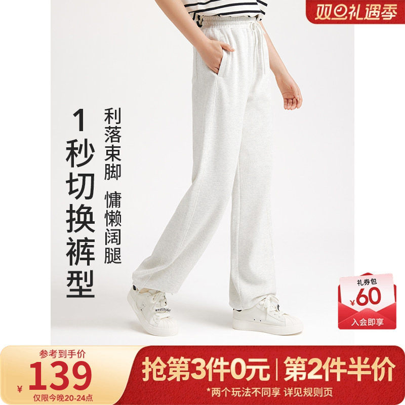 啄木鸟运动裤女春秋款直筒宽松大码垂坠感高腰显瘦小个子窄版阔腿