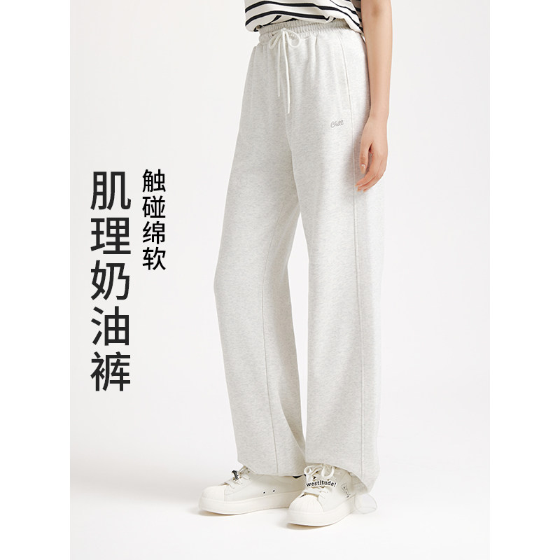 热风女士卫裤2025年秋季新款休闲宽松束脚裤柔软显瘦肌理奶油裤