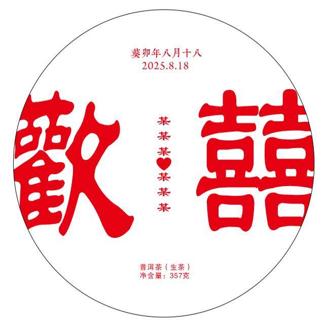 普洱茶饼包装纸 茶叶棉纸设计制作结婚纪念喜饼 饼茶白绵纸