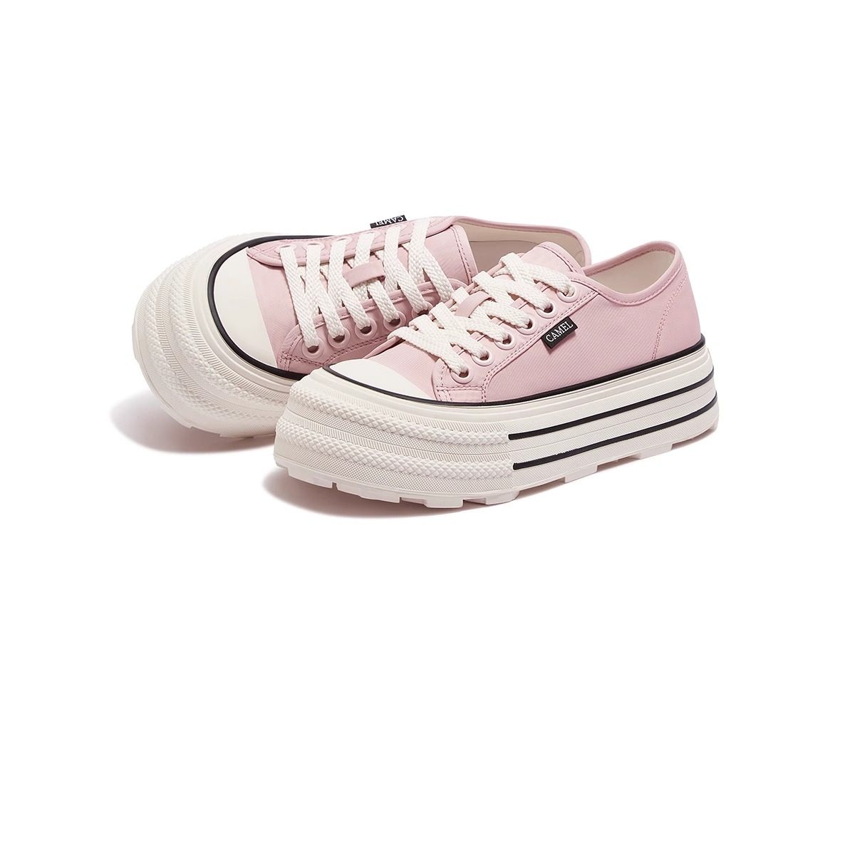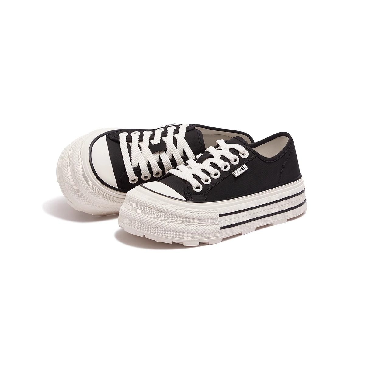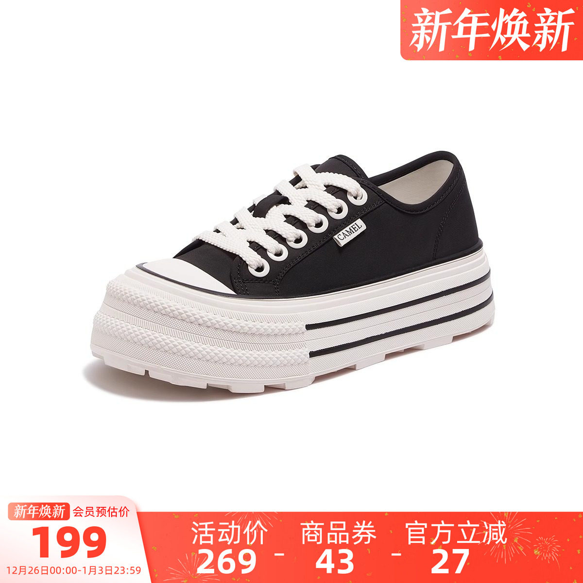 骆驼女鞋2025秋季新款低帮帆布鞋厚底休闲板鞋学生鞋经典黑白布鞋