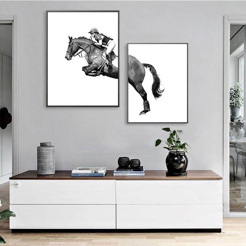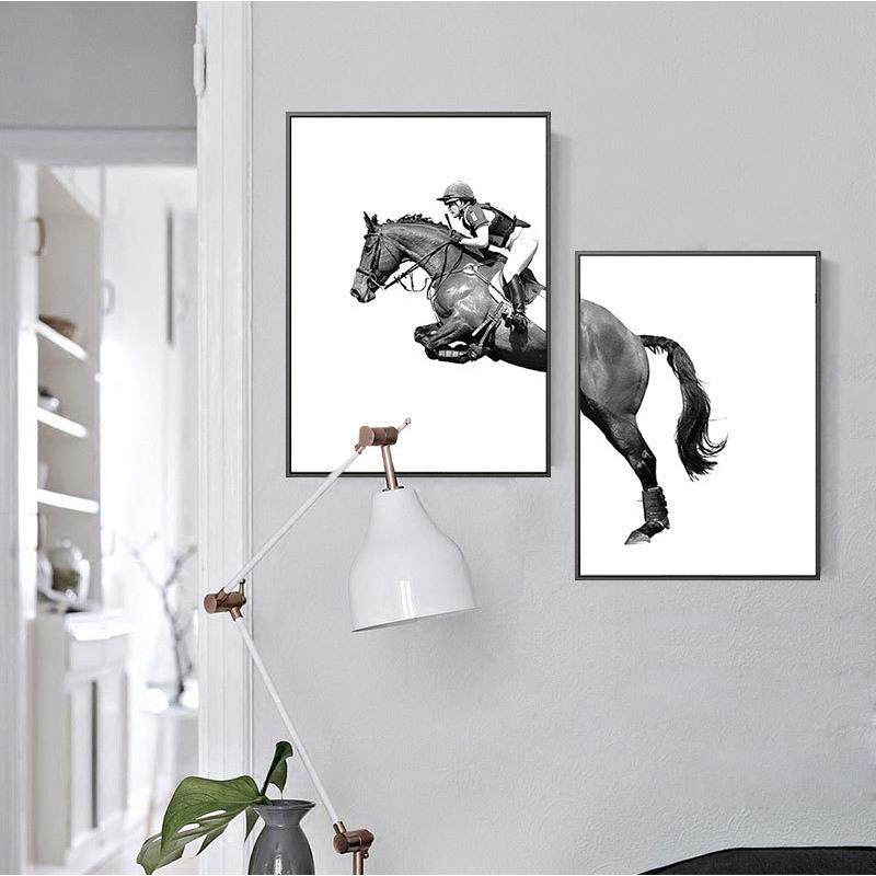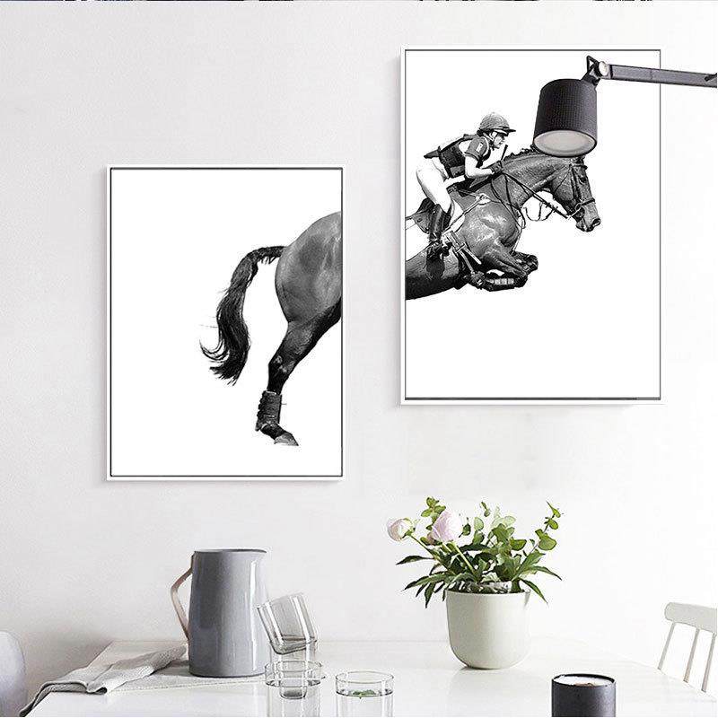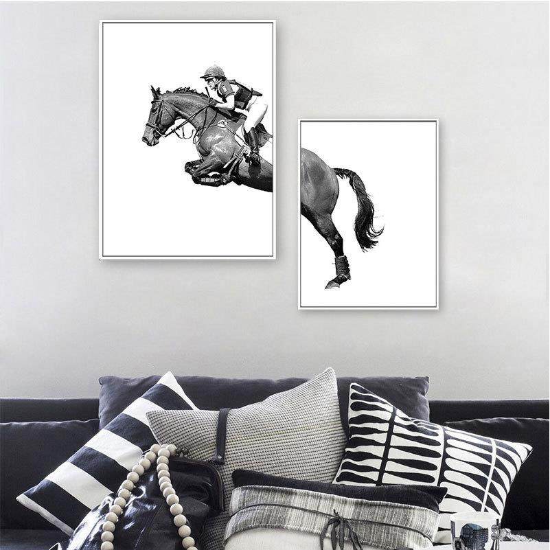 马术骑马个性装饰画黑白动物楼梯间现代简约样板房宾馆办公室挂画