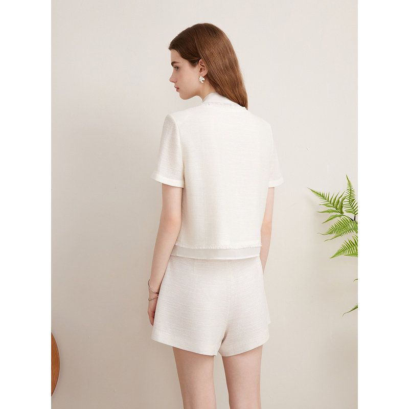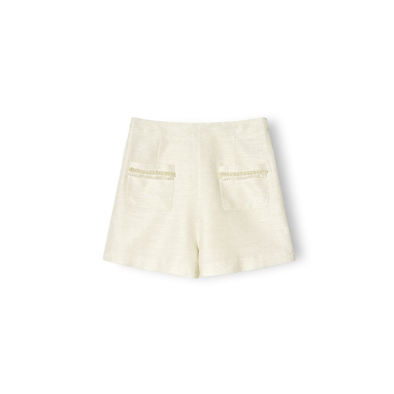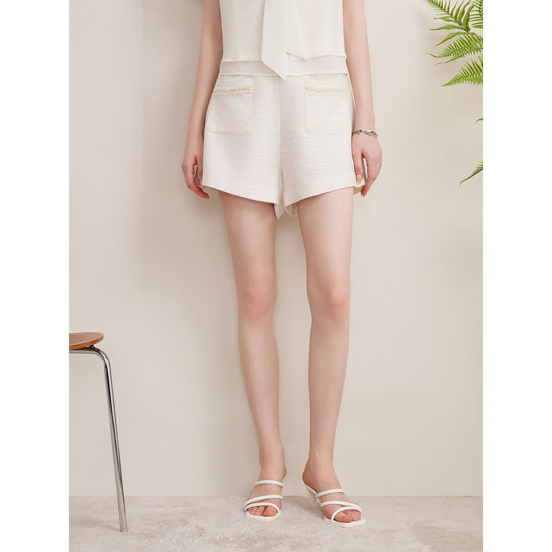 Goodland美地女装夏季小香风时尚钉珠装饰拼接高腰休闲短裤