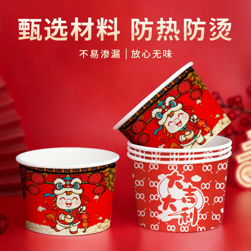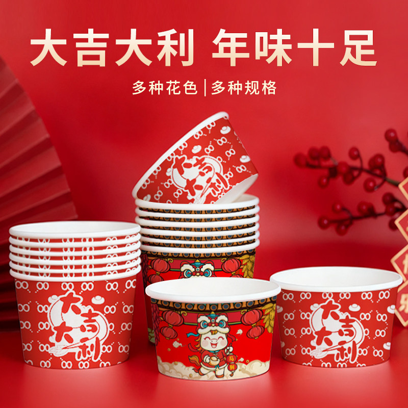2026马年一次性饭碗纸碗餐盒聚餐家用红色饭盒过新年餐具碗筷套装