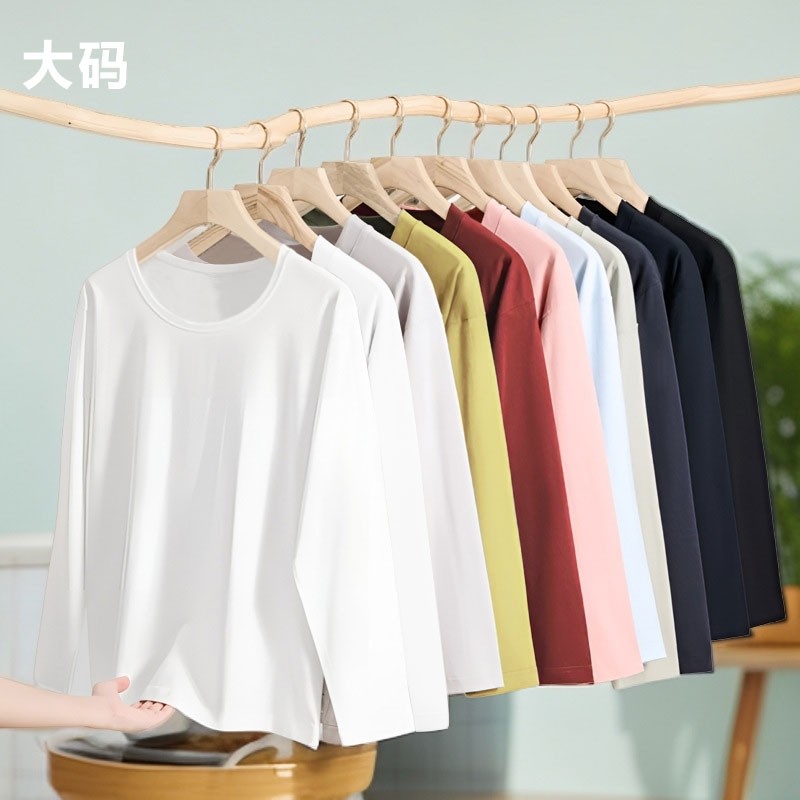 白色打底衫女2025新款大码圆领纯棉长袖t恤修身内搭上衣春秋款