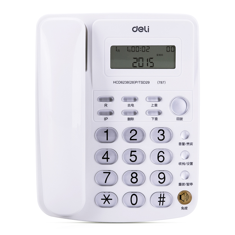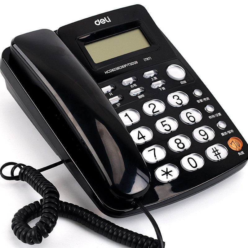 得力787 电话机有绳固定办公家用座机大数字来电显示水晶按键包邮