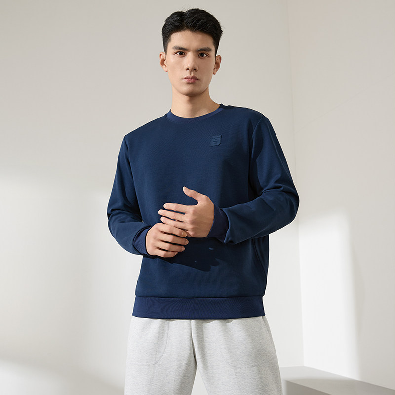 特步圆领卫衣男款2025秋季新款时尚潮流内搭长袖运动套头衫男装