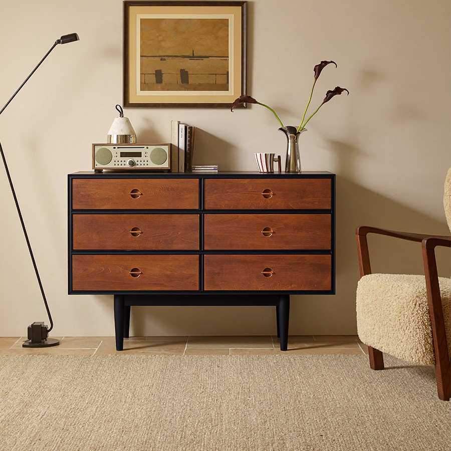 中古风实木斗柜小户型客厅复古收纳储物柜黄杨木抽屉六斗柜九斗柜
