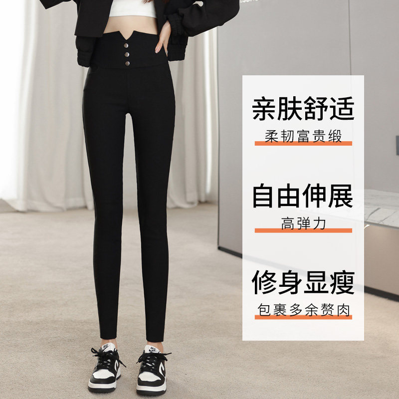 高腰显瘦打底裤女外穿春秋冬款紧身长裤加绒大码胖mm小脚裤子黑色