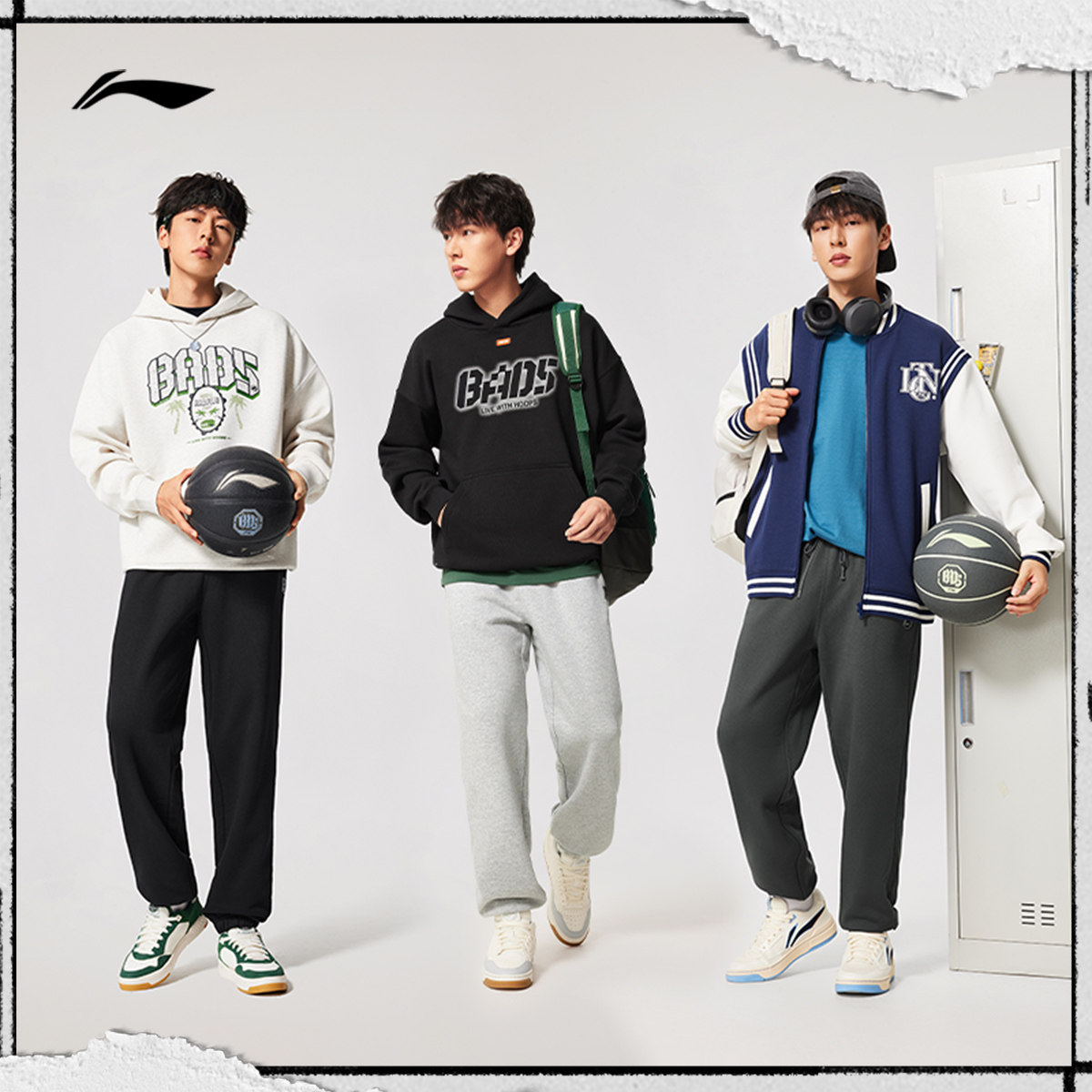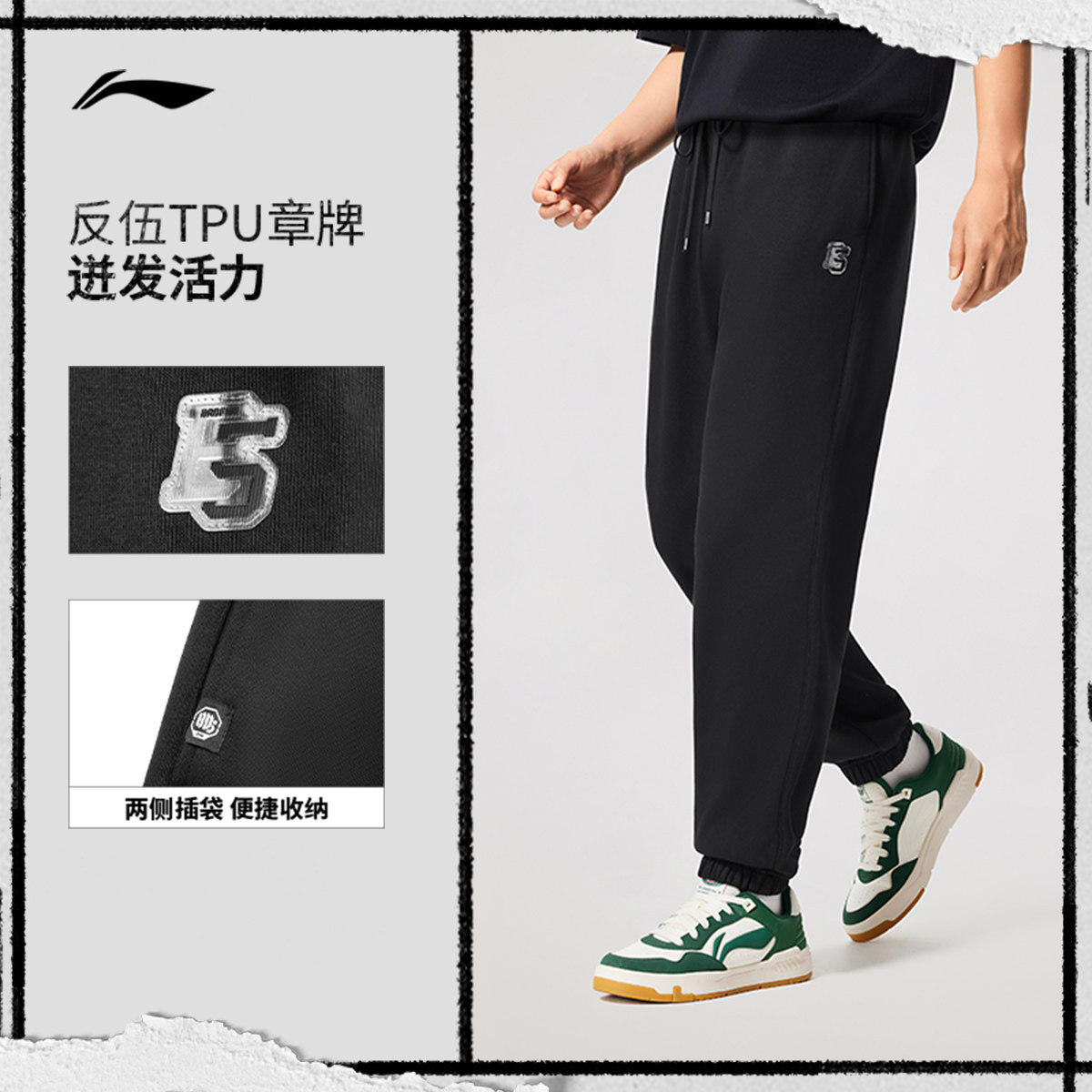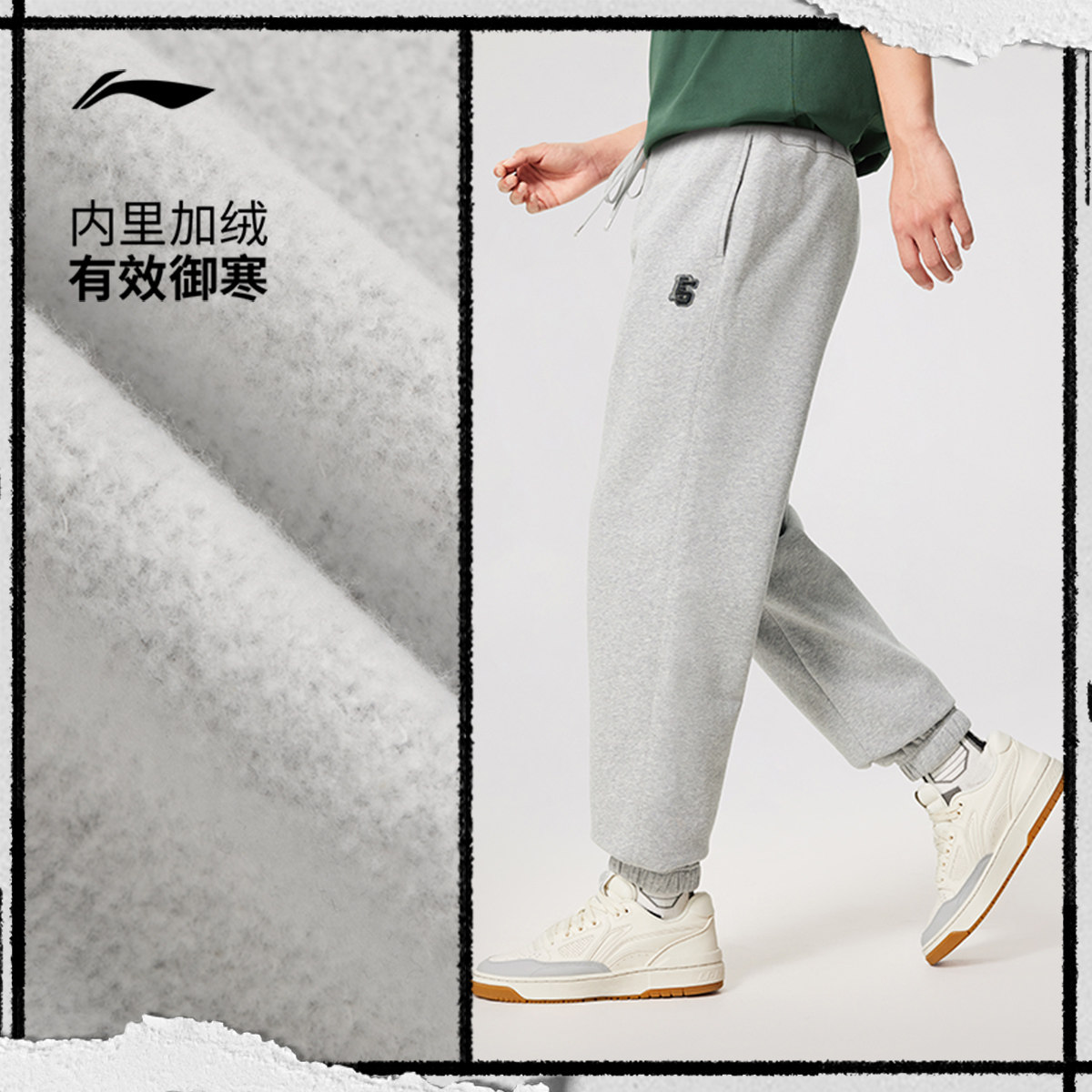 李宁反伍BADFIVE卫裤男士2025新款宽松冬季加绒束脚针织运动服