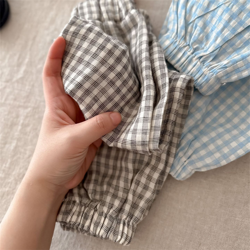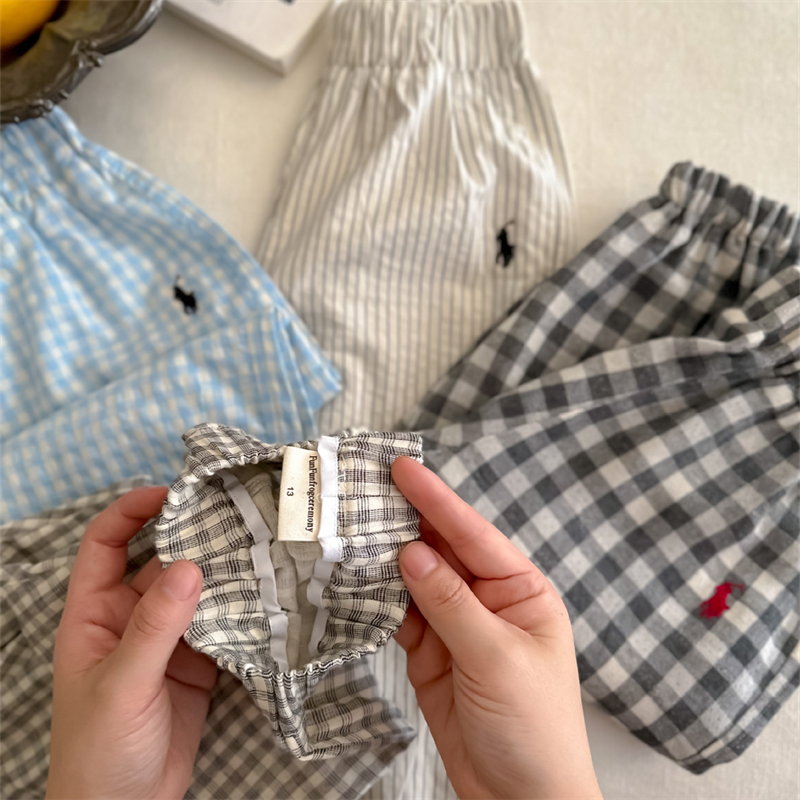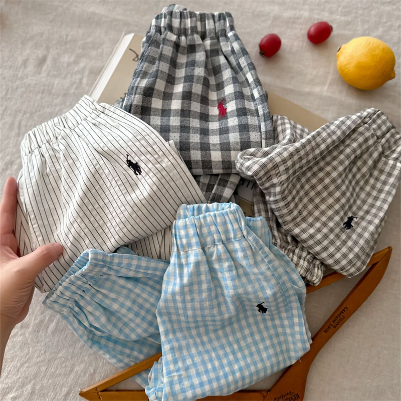 2025夏季款儿童防蚊裤男女童条纹格子长裤宝宝刺绣潮牌束脚休闲裤
