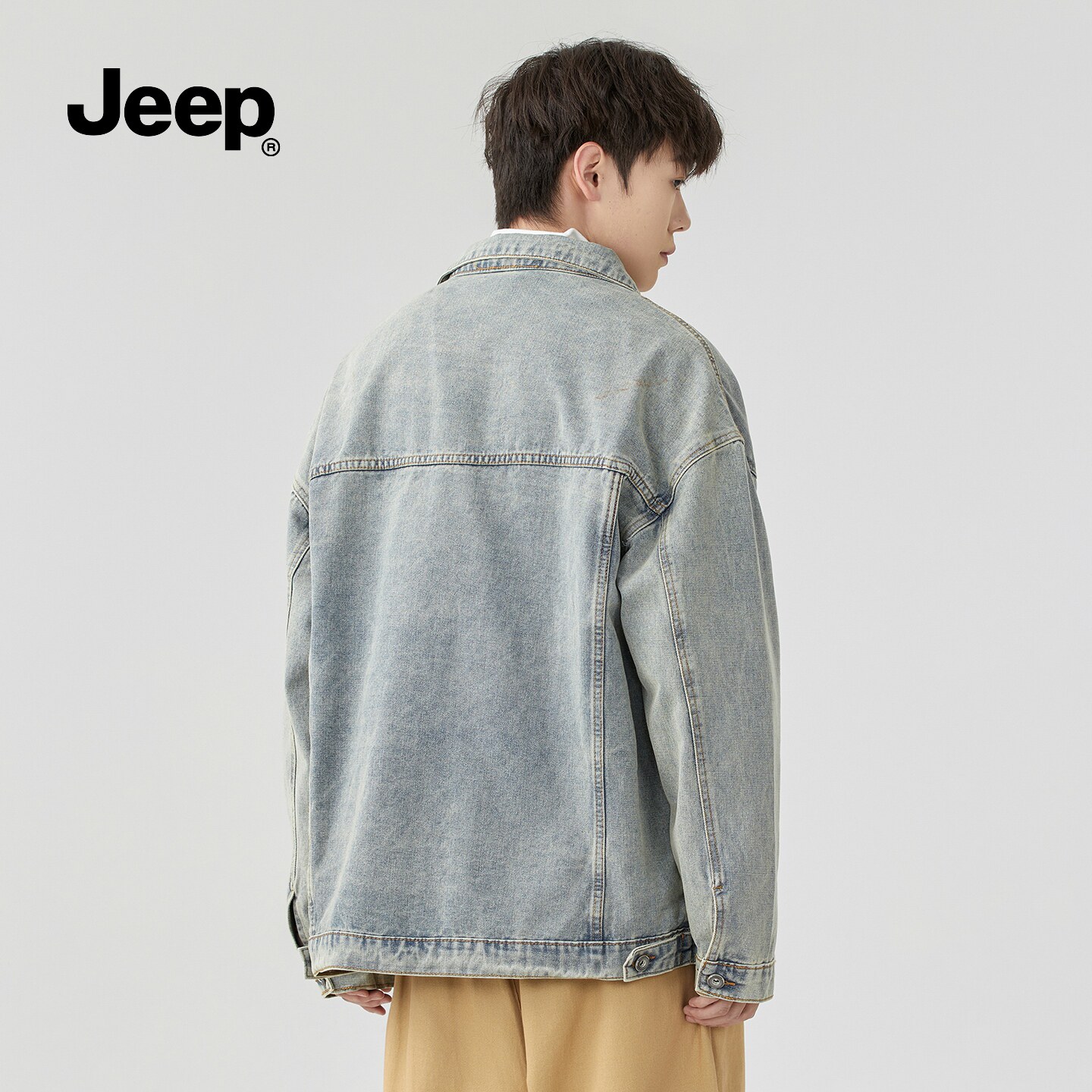 Jeep吉普翻领加绒牛仔外套男秋冬2025保暖复古美式水洗两件套夹克
