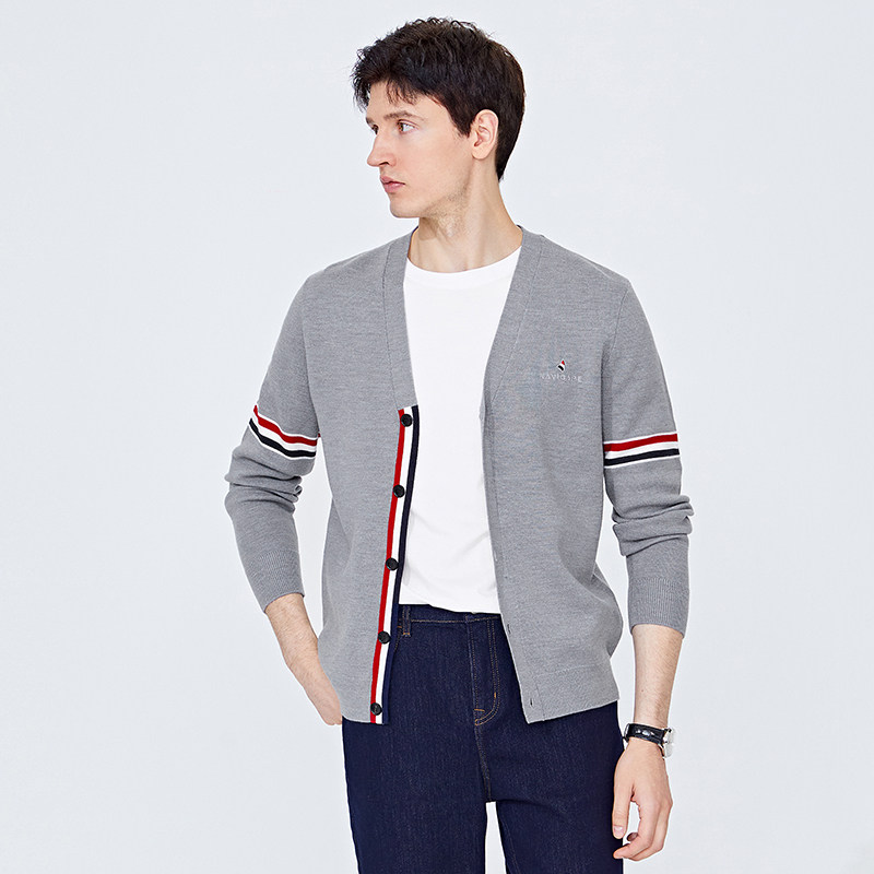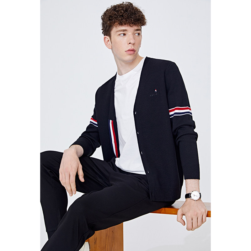 Navigare意大利小帆船时尚V领针织开衫男秋冬款长袖休闲毛衣外套
