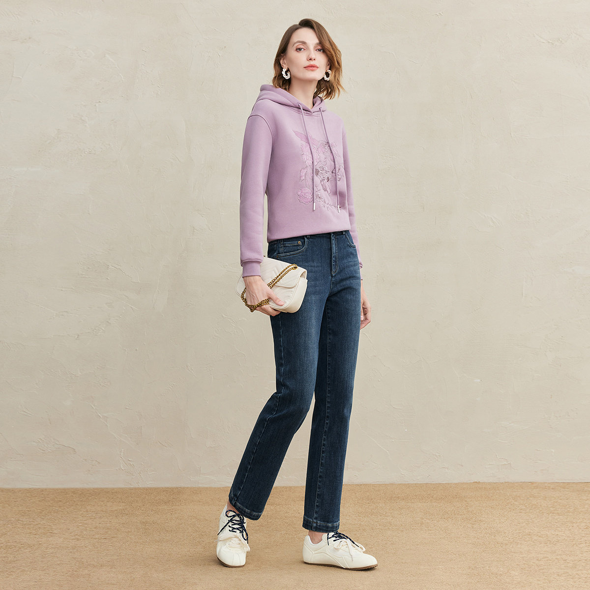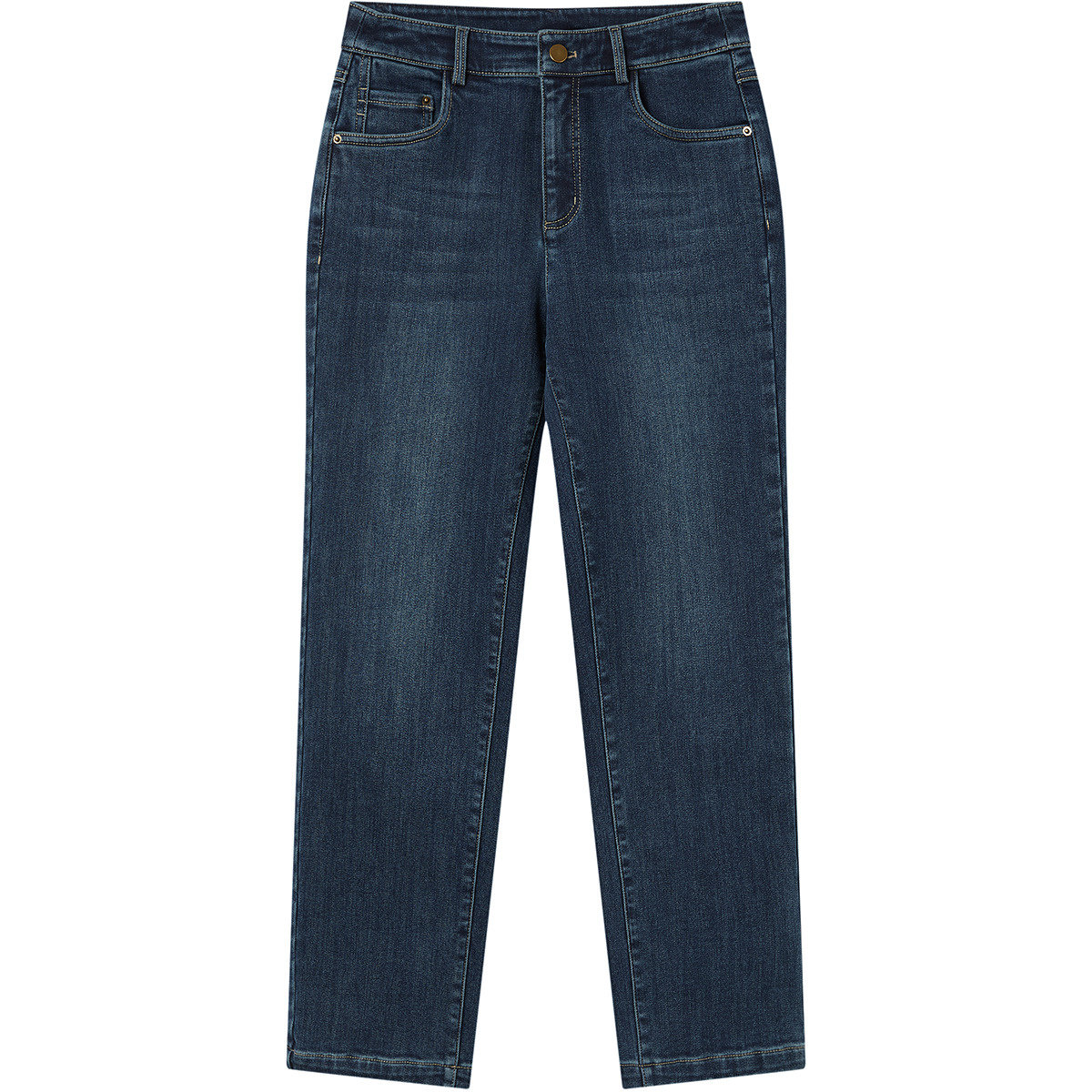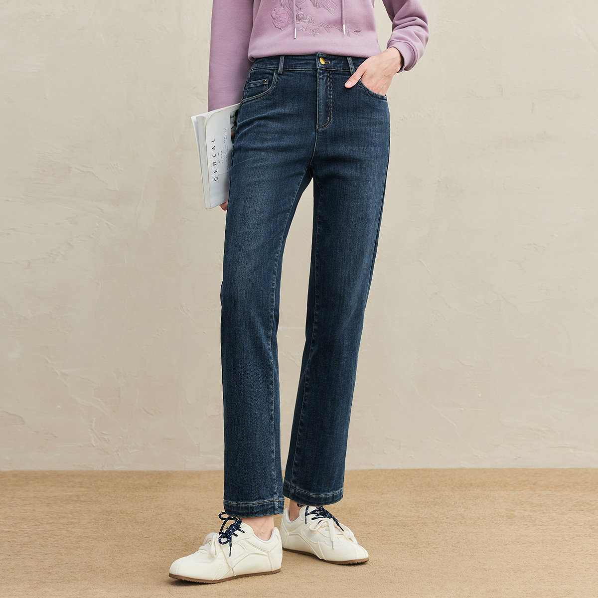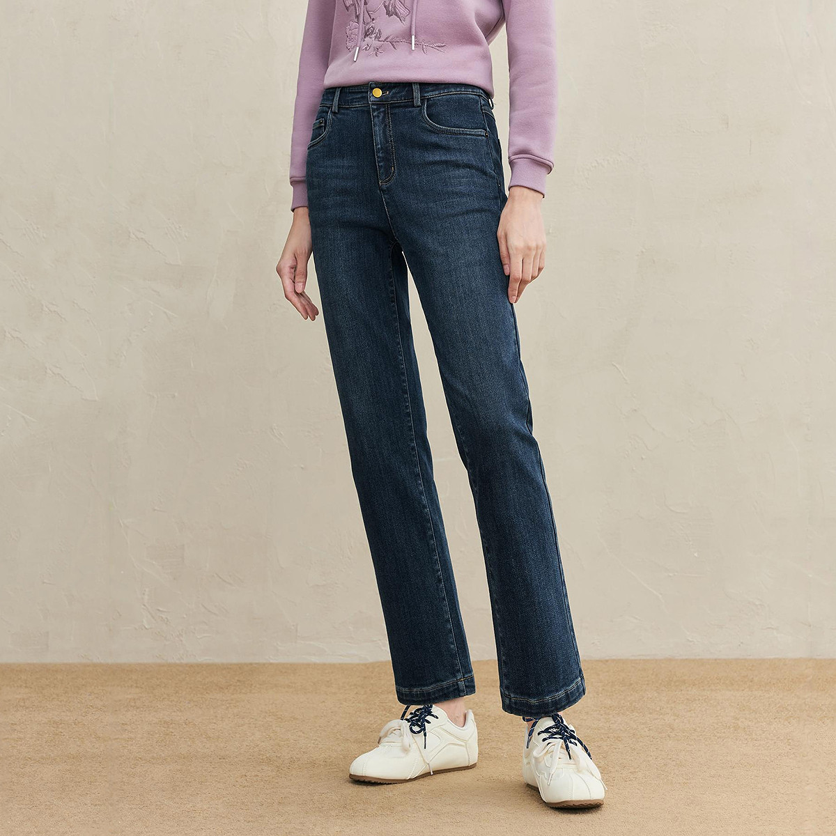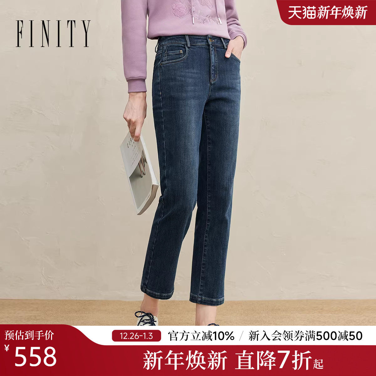 FINITY菲妮迪牛仔裤2025年冬季新款简约蓝色棉质显瘦直筒长裤女士