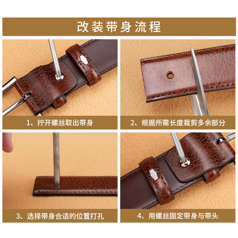 保罗皮带男士裤带头层牛皮老式针扣复古商务休闲牛仔裤腰带纯牛皮