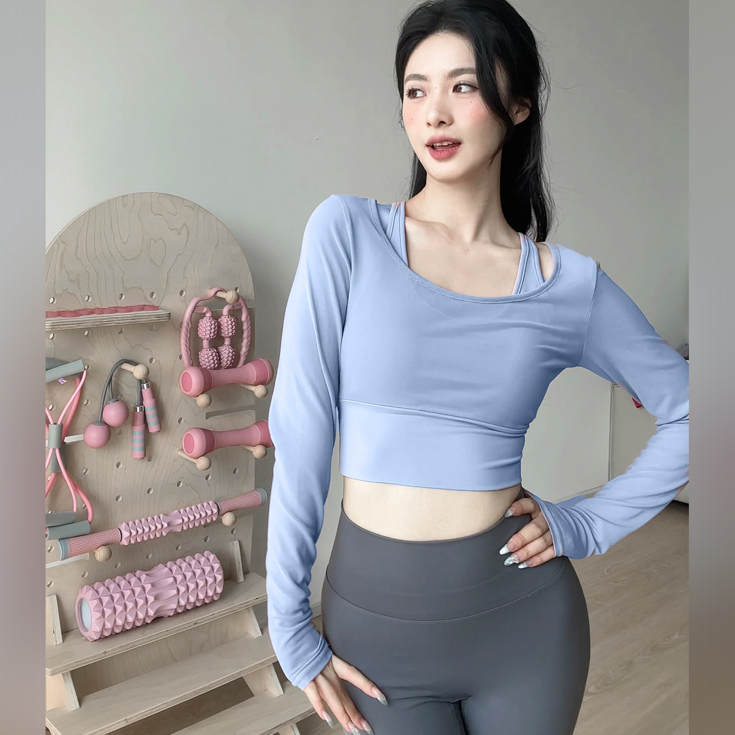 健身服女长袖带胸垫性感紧身显瘦运动跑步大码舞蹈上衣秋户外速干