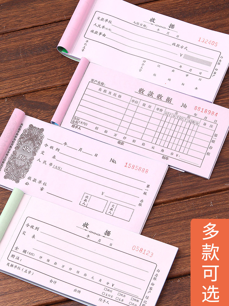收据收款收据单栏多栏二联三联连两联收据本单簿收款本现金收剧单据锯无碳复写餐饮财会财务用品支持定制logo