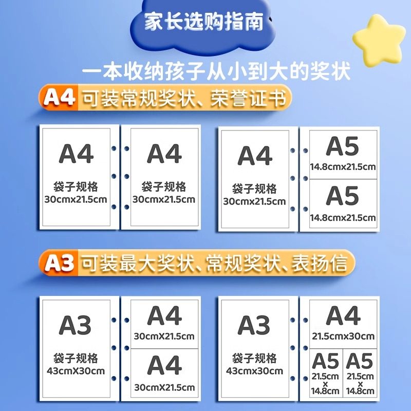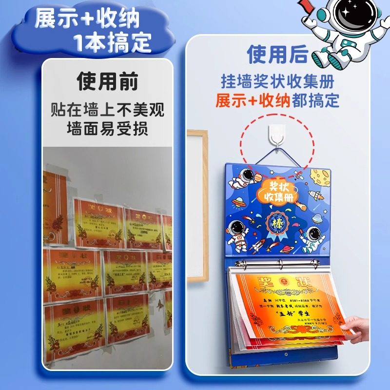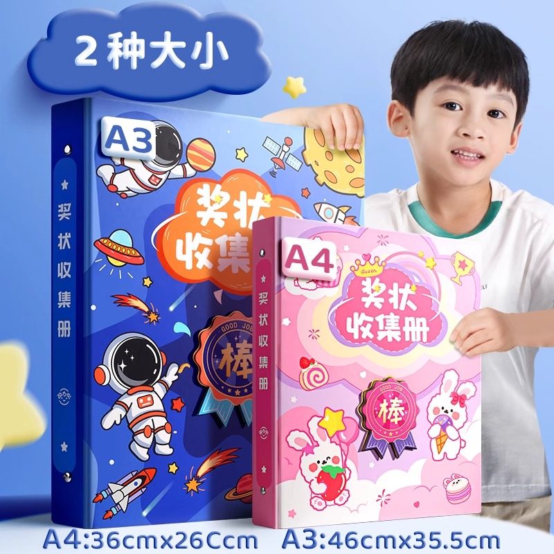 3d奖状收集册可挂墙男孩女孩高颜值小学生奖状收纳册挂墙展示放奖状的册子儿童a4资料册收藏相簿袋2025新款a3