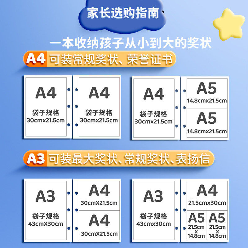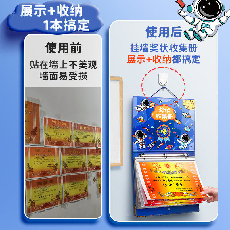 幼儿园奖状收集册3d可挂墙男孩女孩高颜值小学生奖状收纳册展示放奖状的册子儿童a4资料册收藏相册袋2025新款