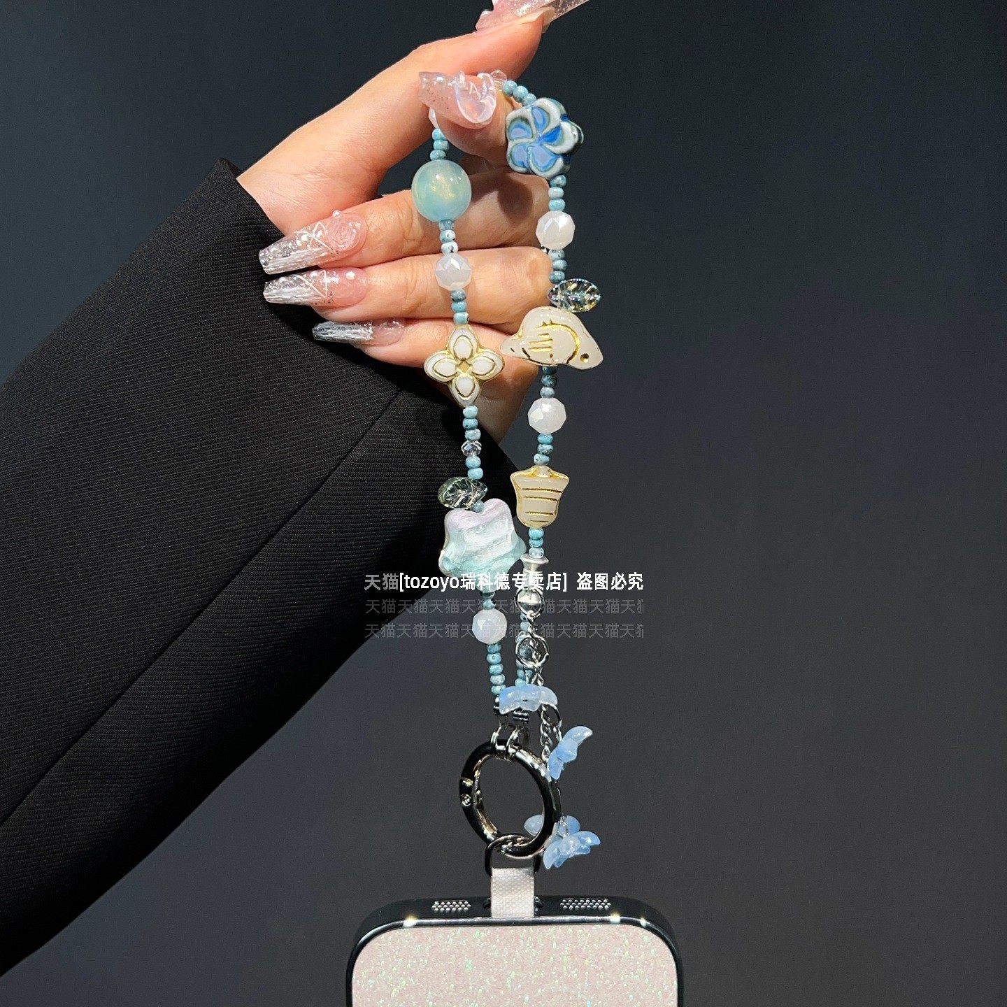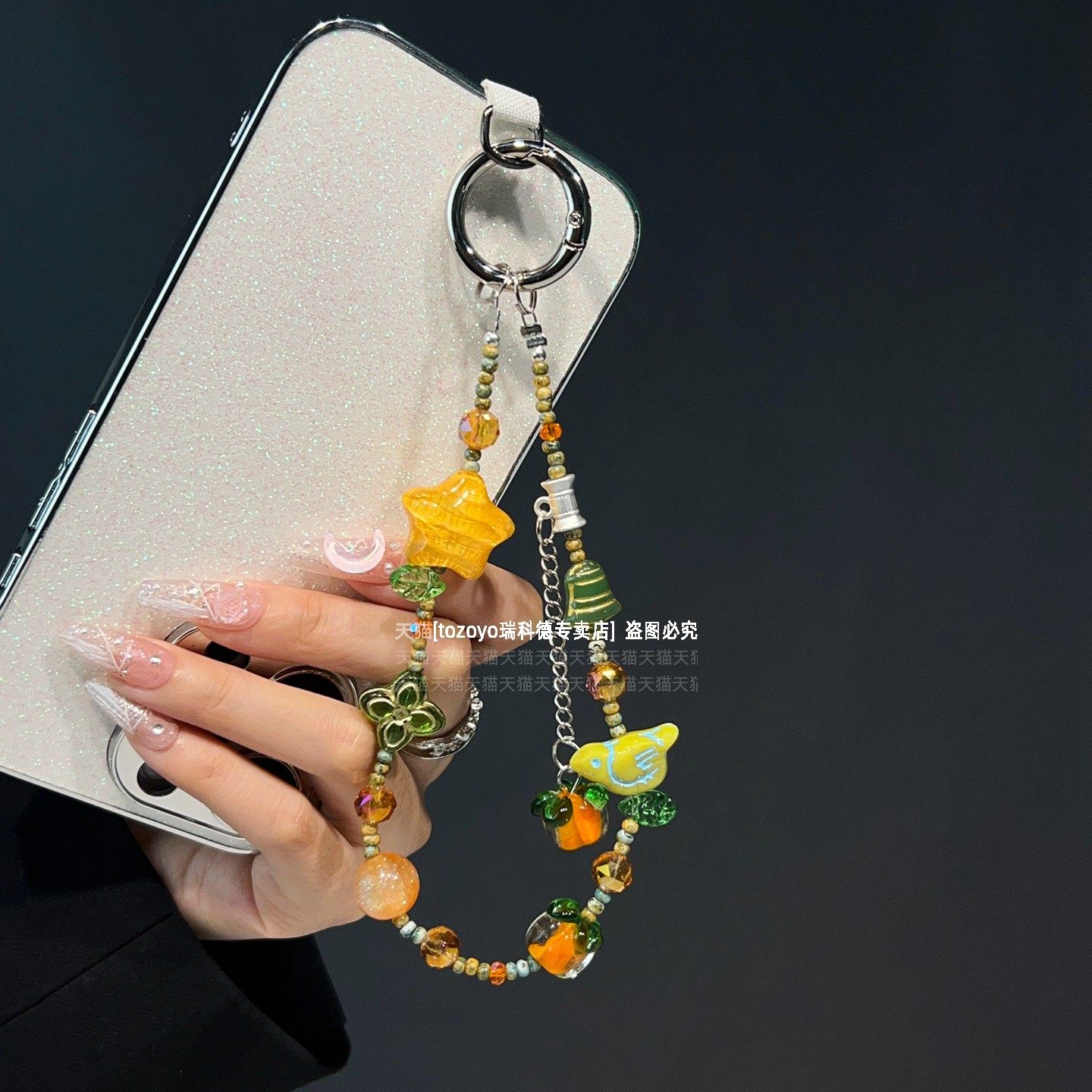 复古手机链柿子花朵吊坠星星挂链创意不规则串珠手链柿柿如意四叶草小众高级感链条腕带包包挂饰挂件钥匙扣壳