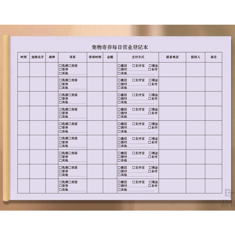 宠物寄养每日营业登记本店铺每日记账本宠物店客户消费记录登记表宠物店前台登记表定制爱宠清洗修剪美容消费