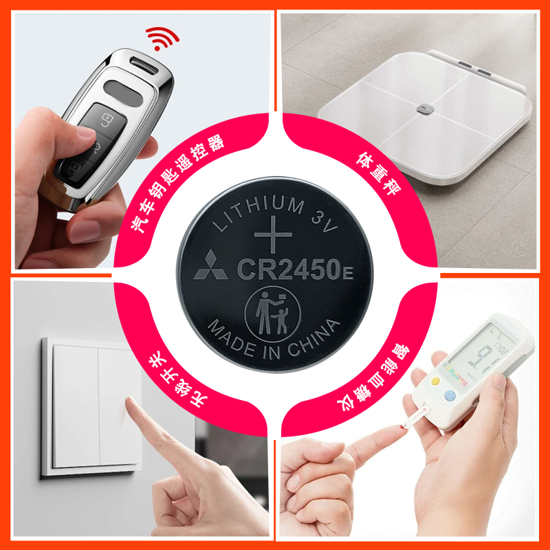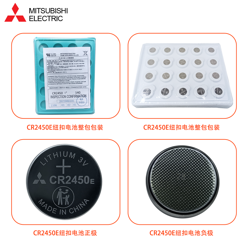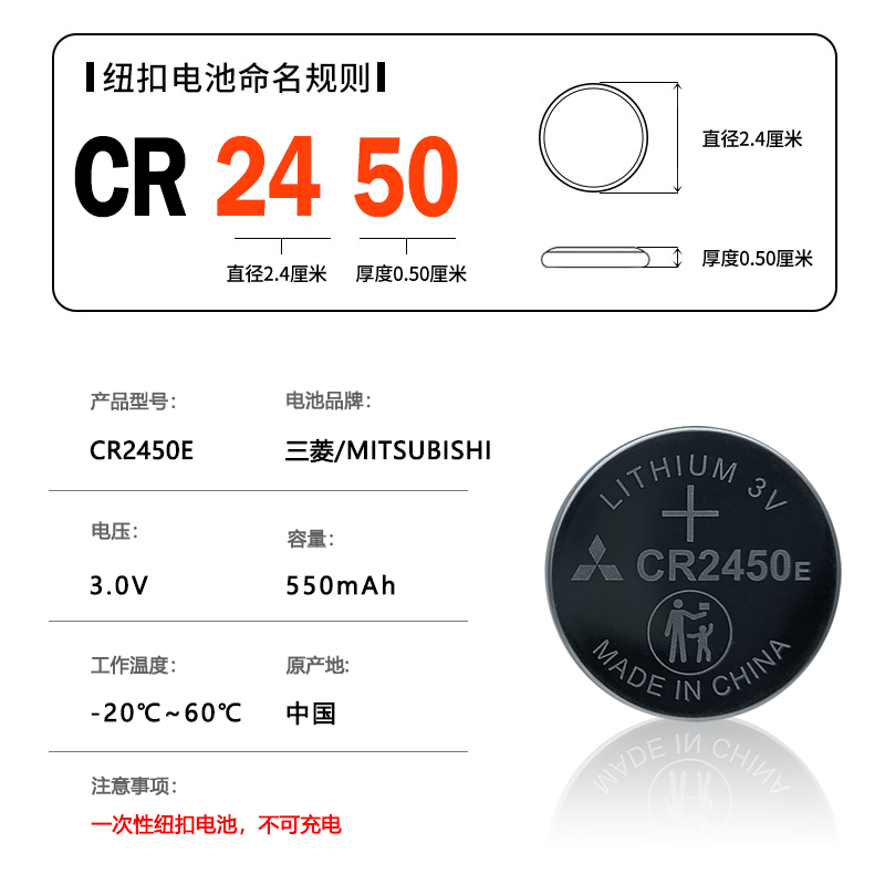 三菱CR2450E纽扣电池3V适用于宝马九牧好太太自动升降晾衣架热水器晾霸浴霸电动车智能钥匙遥控器电池