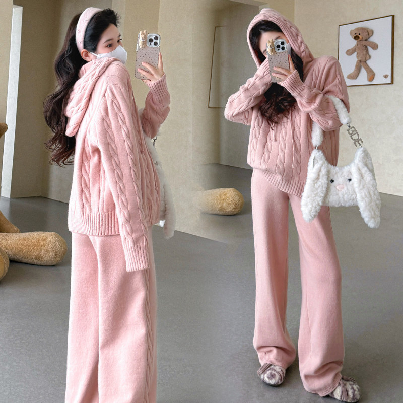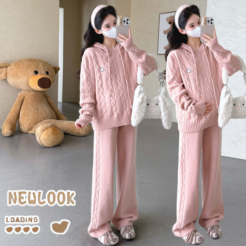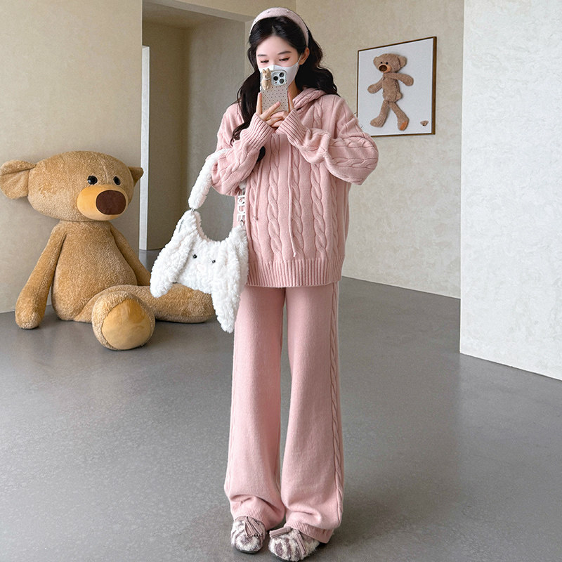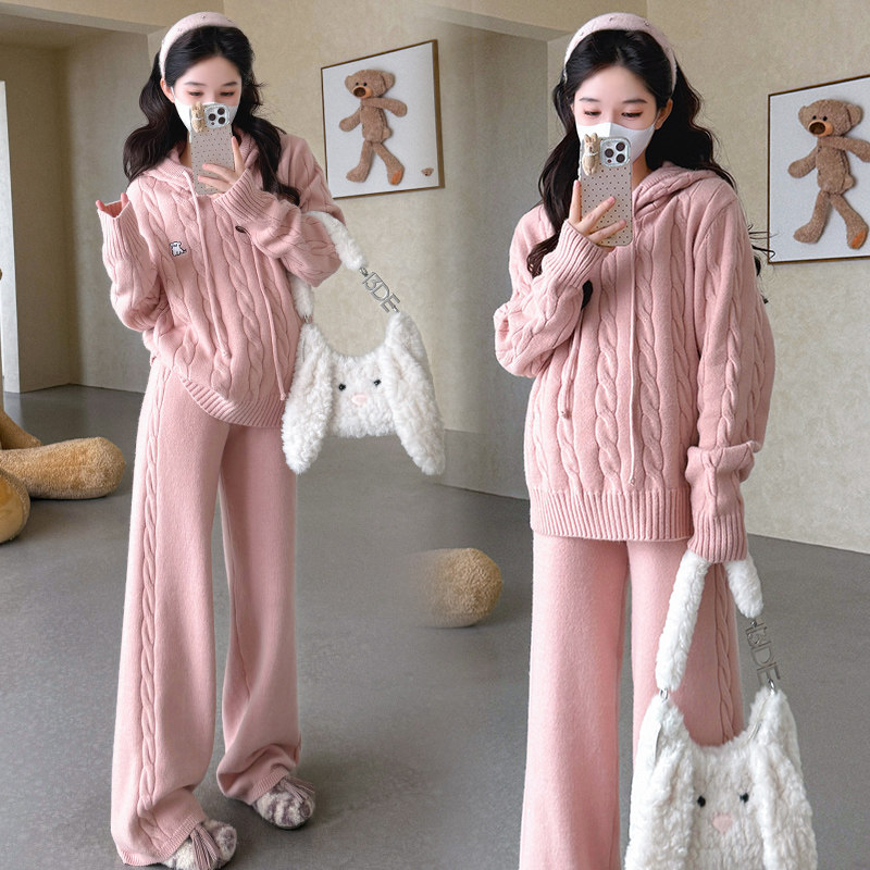 婧麒孕妇装卫衣套装2025新款针织裤子两件套孕期秋冬季连帽上衣女