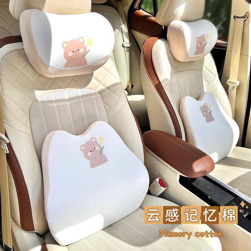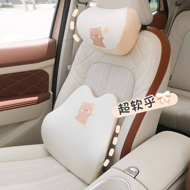 汽车车头枕护颈枕记忆棉腰靠可爱通用车内改装座椅腰靠背柔软支撑