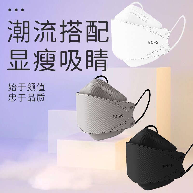 100只KN95莫兰迪一次性口罩4D立体网红时尚高颜值透气鱼嘴v脸防护