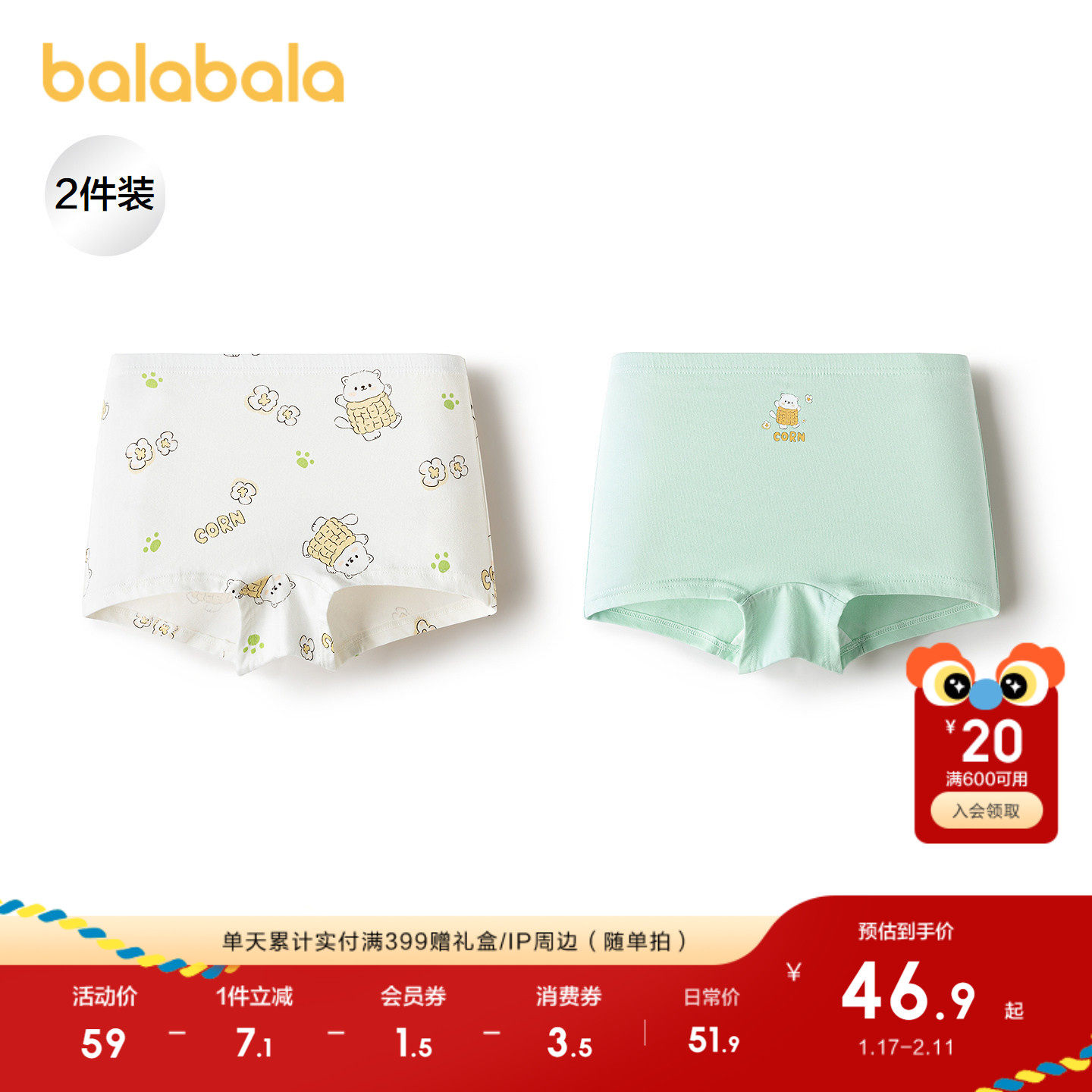 【商场同款】巴拉巴拉女童内裤儿童四角短裤小童宝宝不夹PP两条装