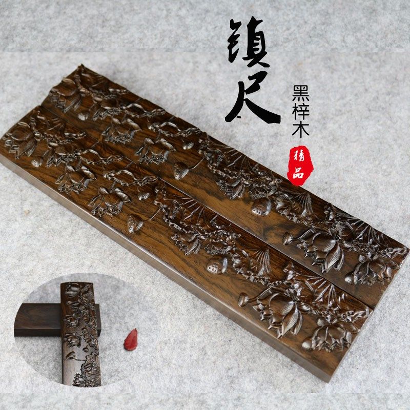 红木雕刻 书镇镇纸镇尺压纸镇书法用品 黑梓木浮雕文房四宝