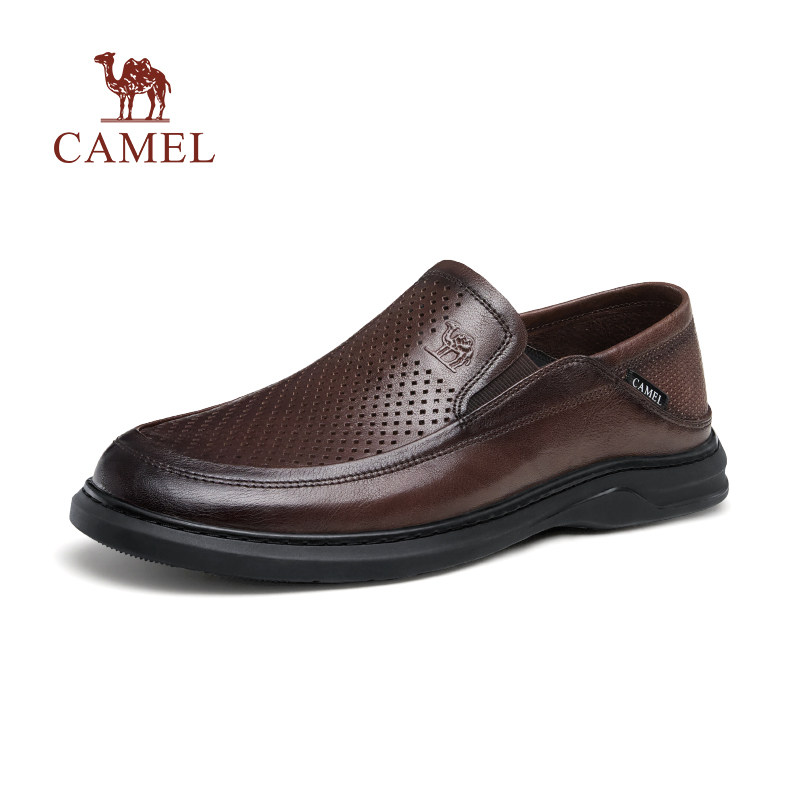 骆驼户外休闲2026春季真皮软底透气舒适套脚中年休闲商务皮鞋男耐