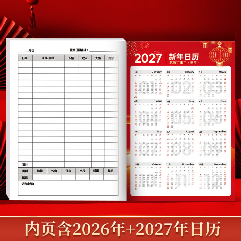 2026年每日记账本明细账家庭理财笔记本生活日常开支销售营业本现金人情收支明细台账本记录本家用工资表
