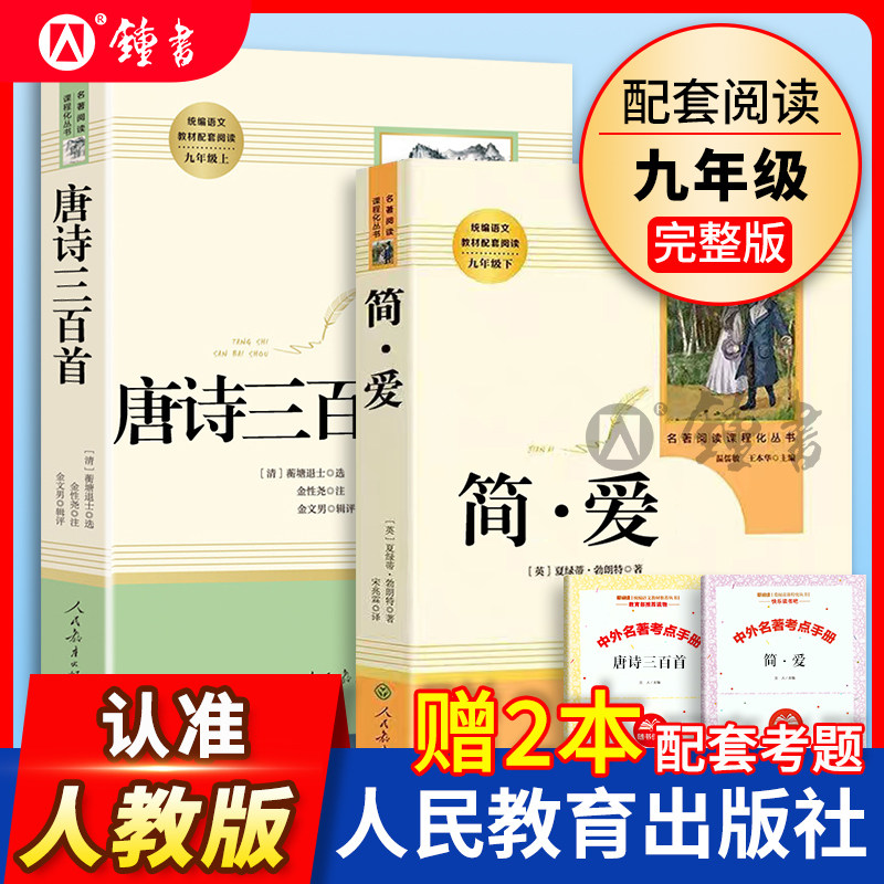 唐诗三百首人民教育出版社简爱书籍水浒传原著正版完整版全集无删减儒林外史九年级上册下册初中生文学名著书目初三语文课外阅读书
