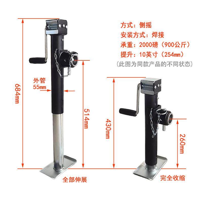2000磅圆管侧摇拖车千斤顶 10寸房车平衡提升 千斤顶支架汽车配件