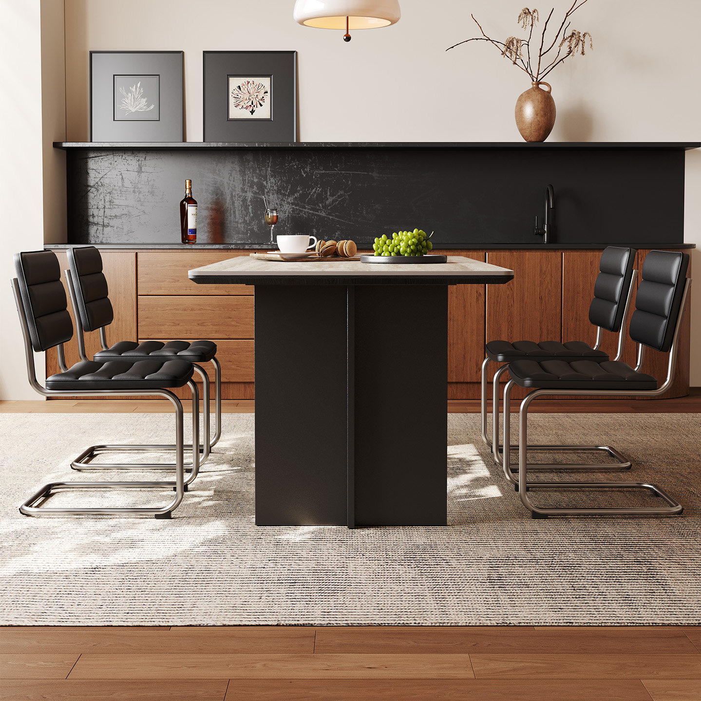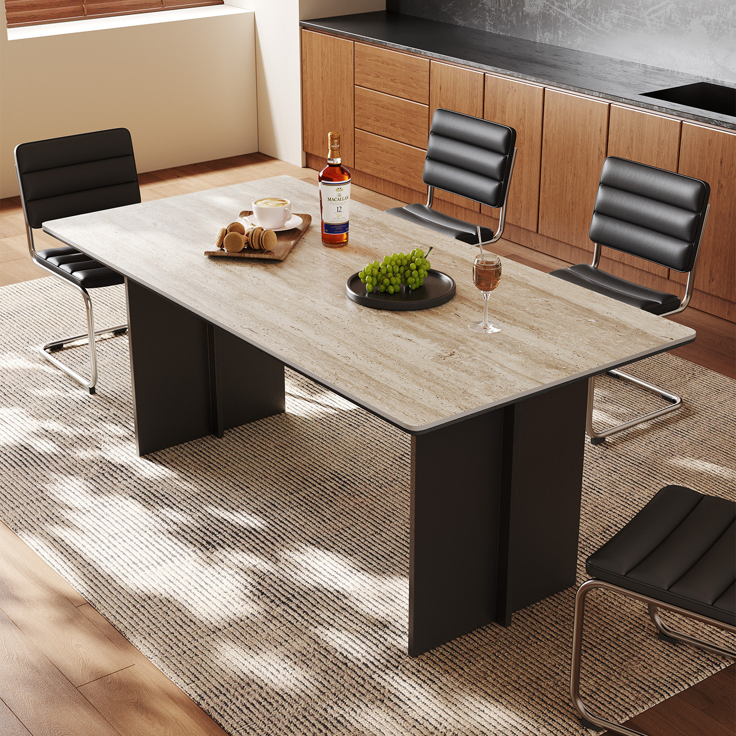 洞石岩板餐桌中古长方形2025新款家用小户型意式极简全托黑色饭桌