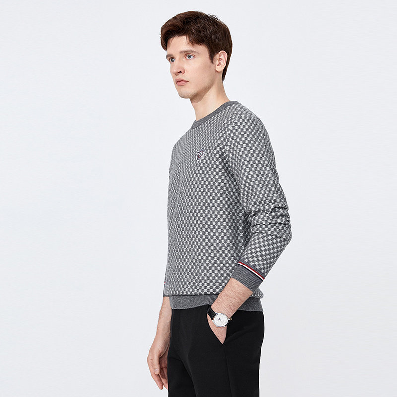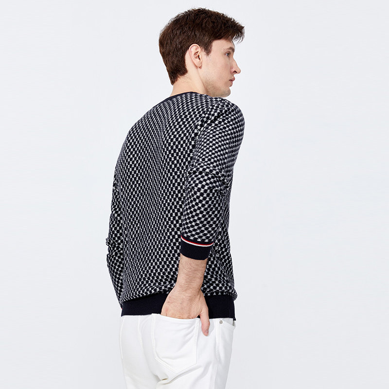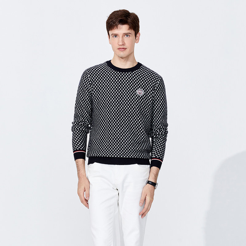 森马毛衫男冬季满版提花针织衫撞色毛衣宽松套头衫百搭提花潮-TK