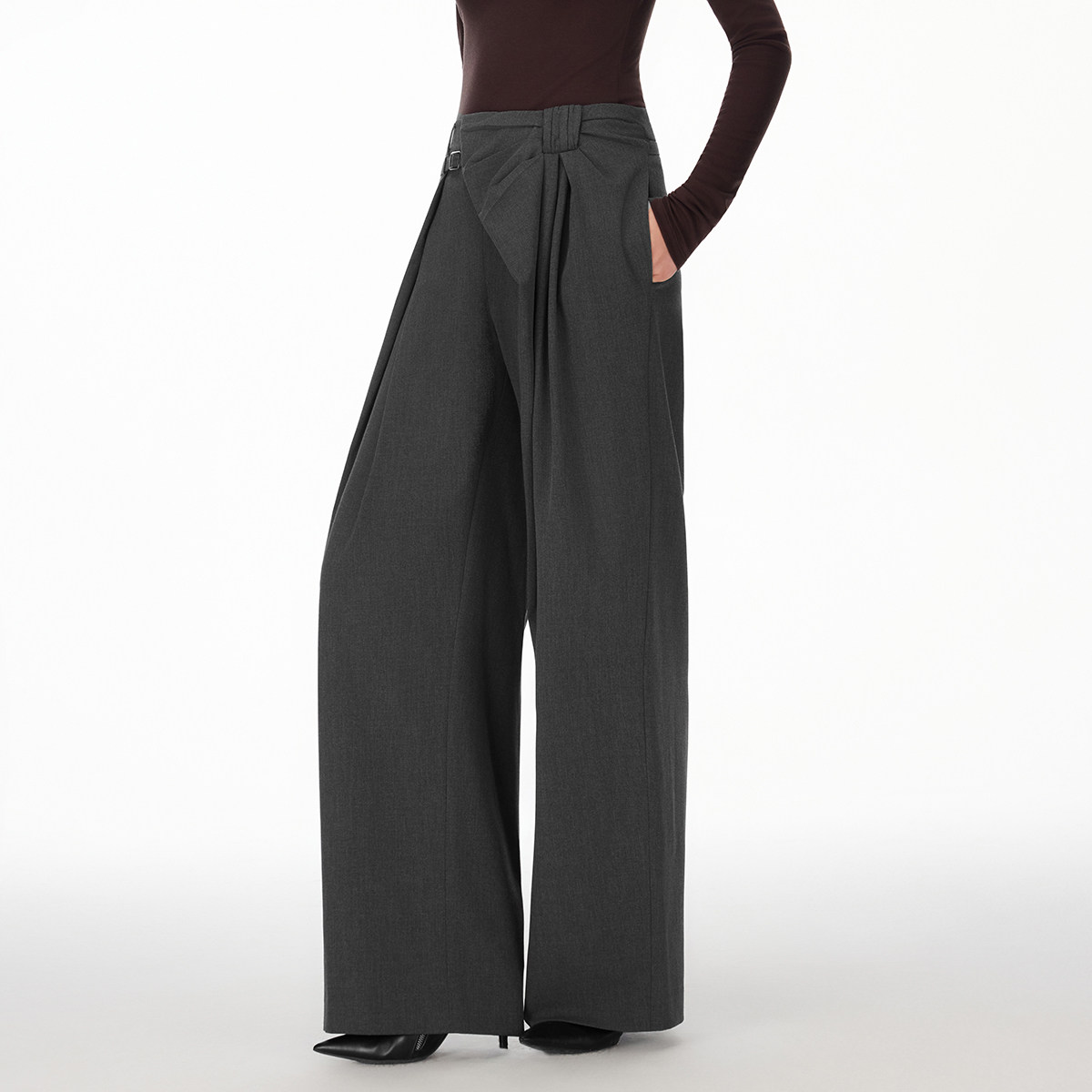 Vero Moda休闲裤女2026春季新款蝴蝶结褶皱可拆腰带宽松阔腿裤