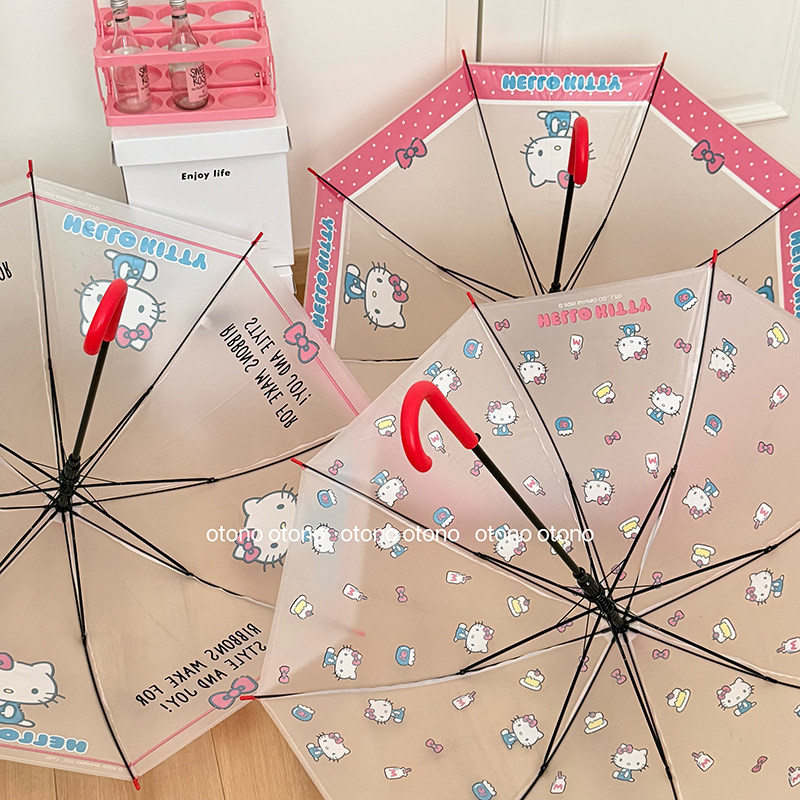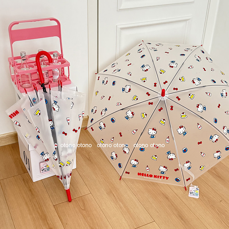 正版凯蒂猫磨砂透明雨伞kt猫可爱女儿童学生hellokitty防晒自动伞
