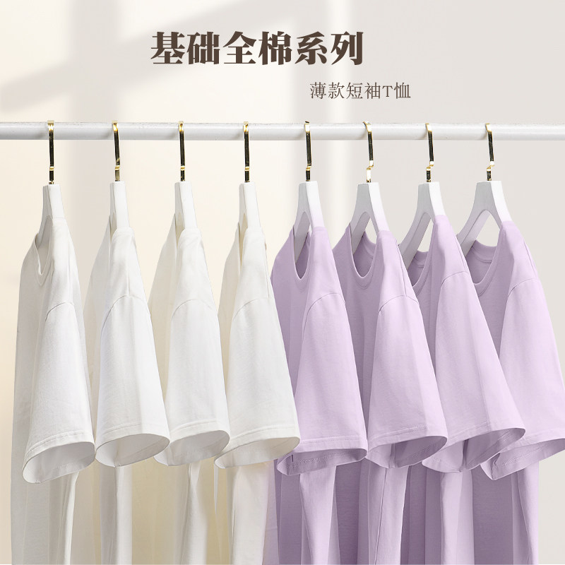 大洪官方轻氧T高级休闲简约显瘦圆领短袖T恤时尚宽松气质纯色上衣