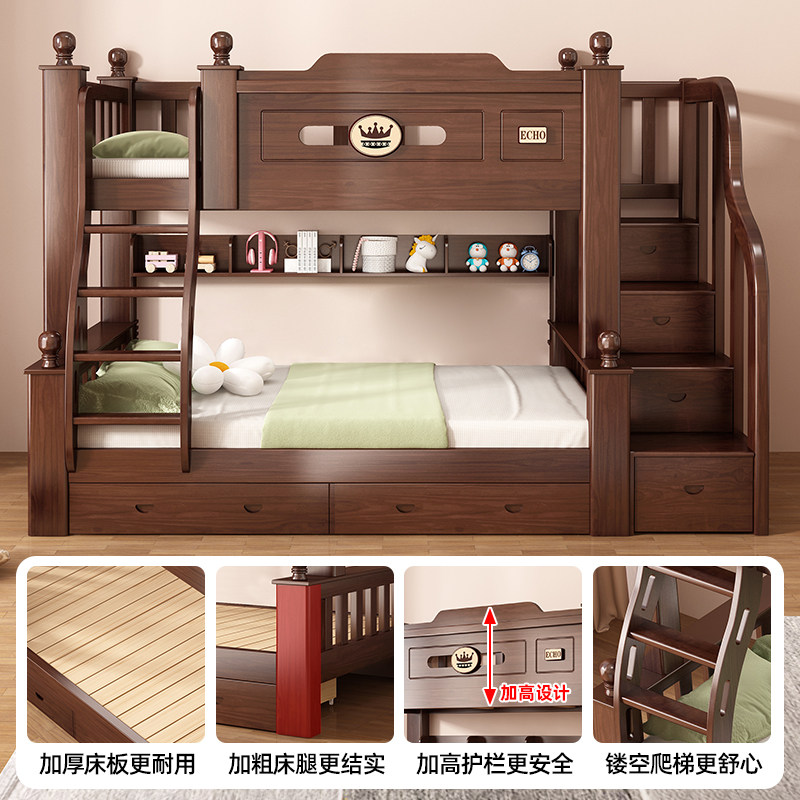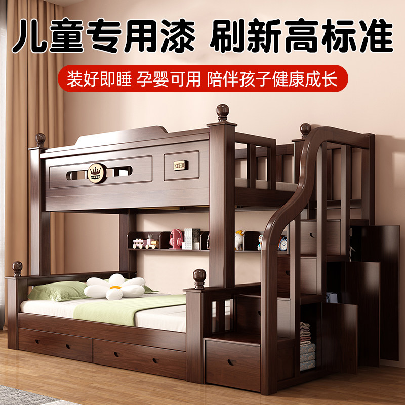 上下铺双层床上下床高低床子母床儿童床全实木加粗加厚成人小户型