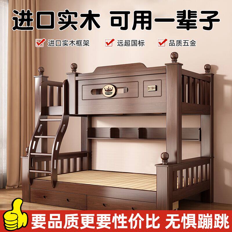 上下床双层床多功能高低床子母床两层全实木儿童床上下铺木床大人