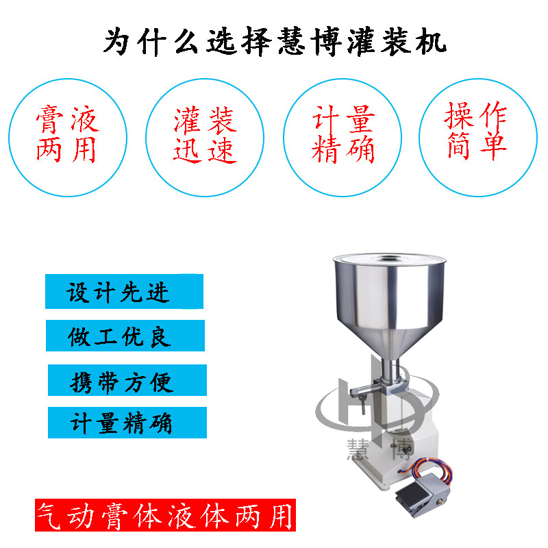 慧博A02小型气动定量灌装机化妆品面霜蜂蜜膏体液体称重分装机