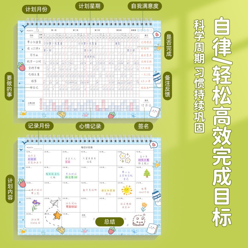 自律打卡本计划表习惯养成时间管理月周规划每日计划本小学生儿童任务计划日程本日历初中学习本台历暑假暑期