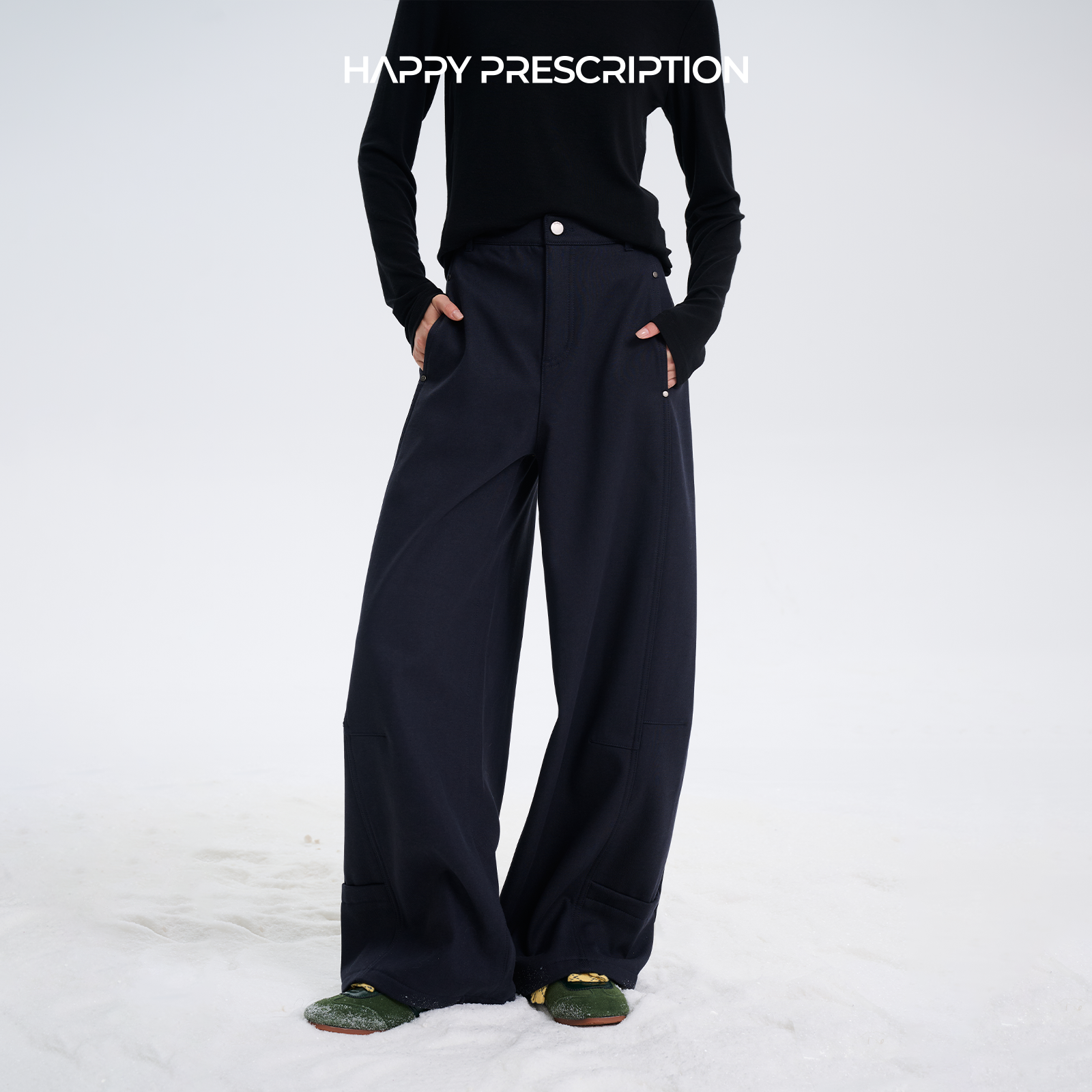 【博主推荐】Happy Prescription快乐药方设计感中低腰工装弯刀裤