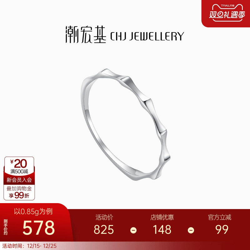 潮宏基铂雅清冷铂金戒指PT950白金花环女戒指环生日礼物
