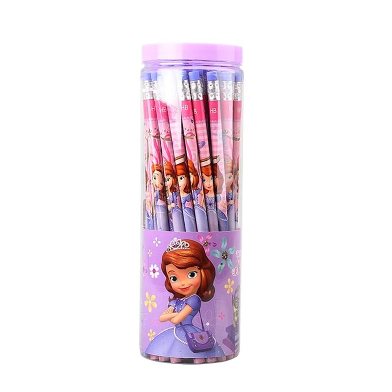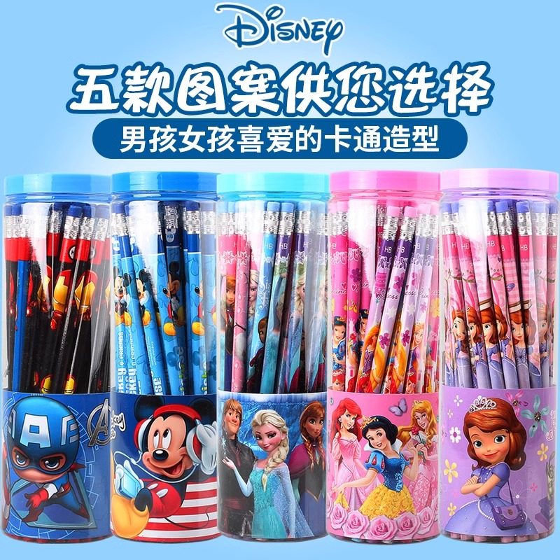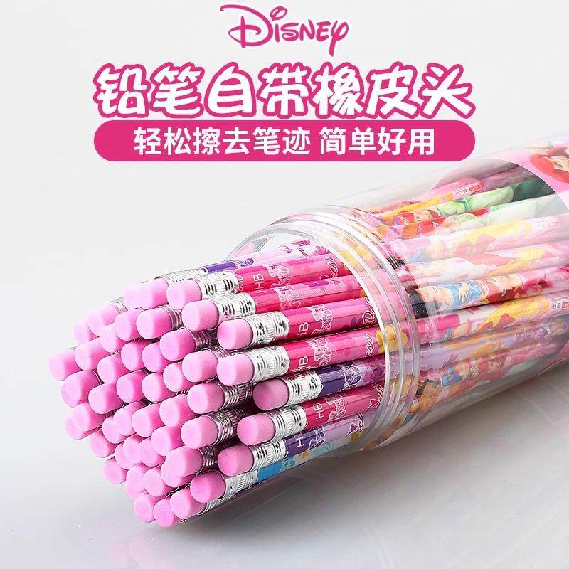 迪士尼卡通铅笔女孩小学生专用HB一年级苏菲亚公主初学者带橡皮头